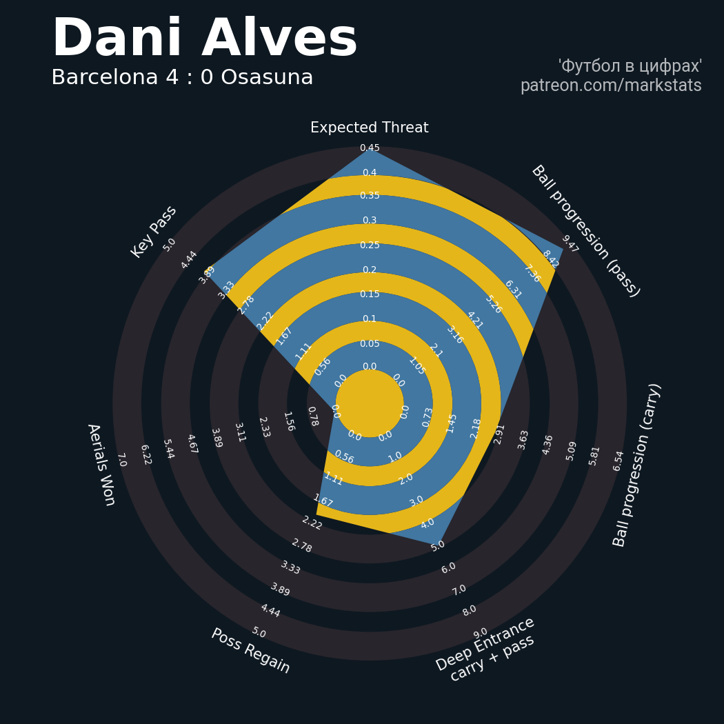 ▪ 0.45 очка xT (+0.01 со стандартов)