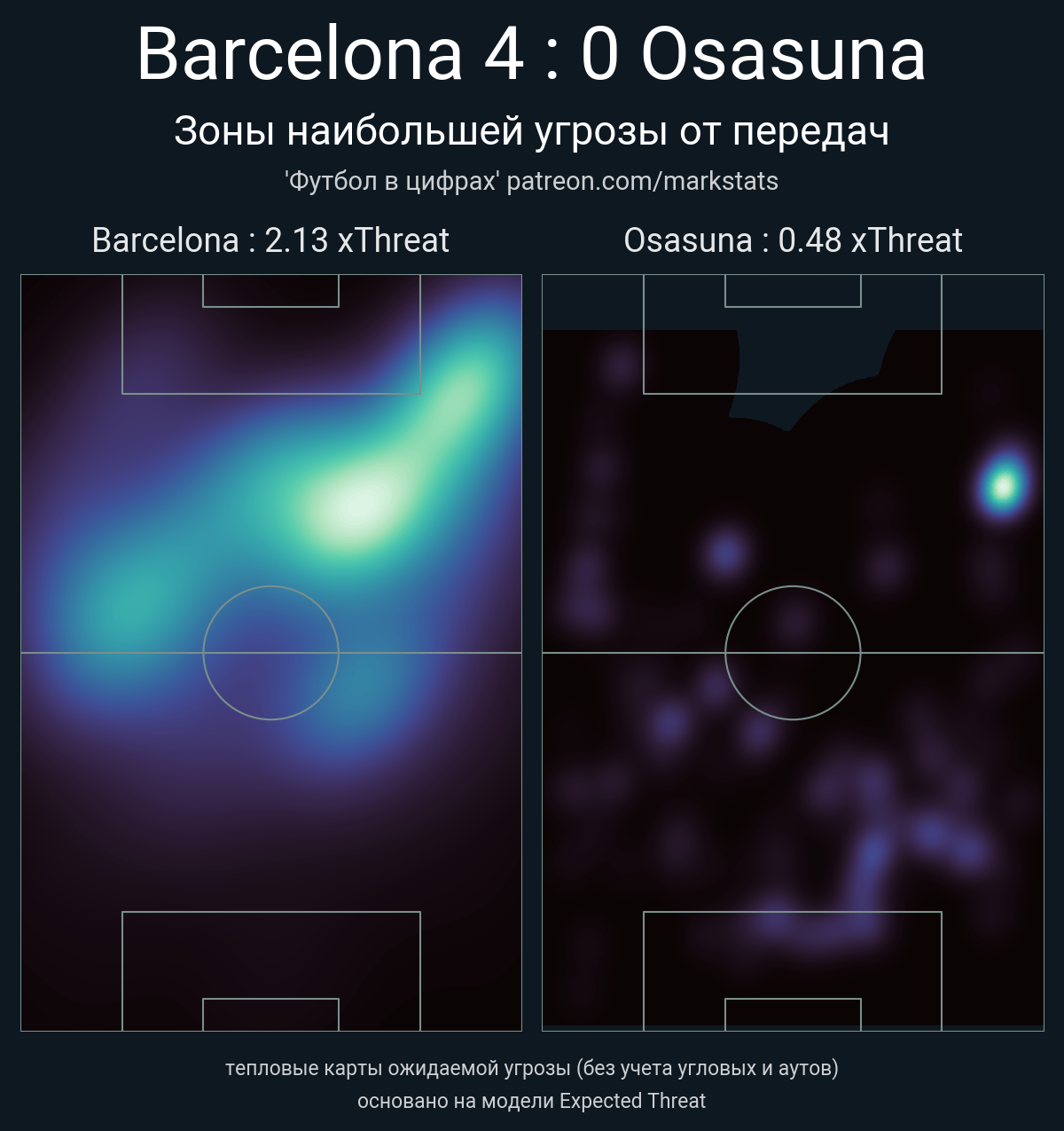 ▪ xThreat без учета угловых: 2.13 - 0.48
