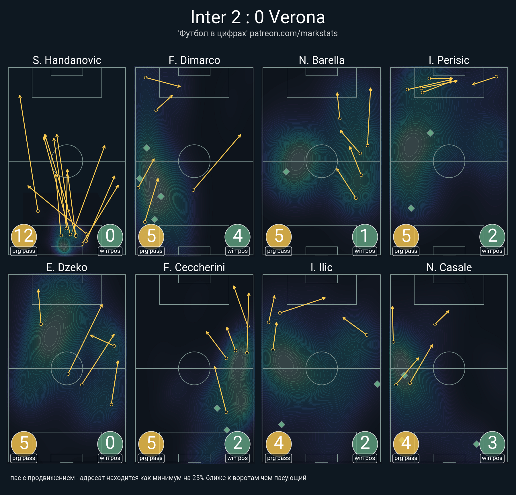 ▪ 25 успешных передач из 38 попыток (1 под удар, 3 с продвижением, 9 на трети соперника)
