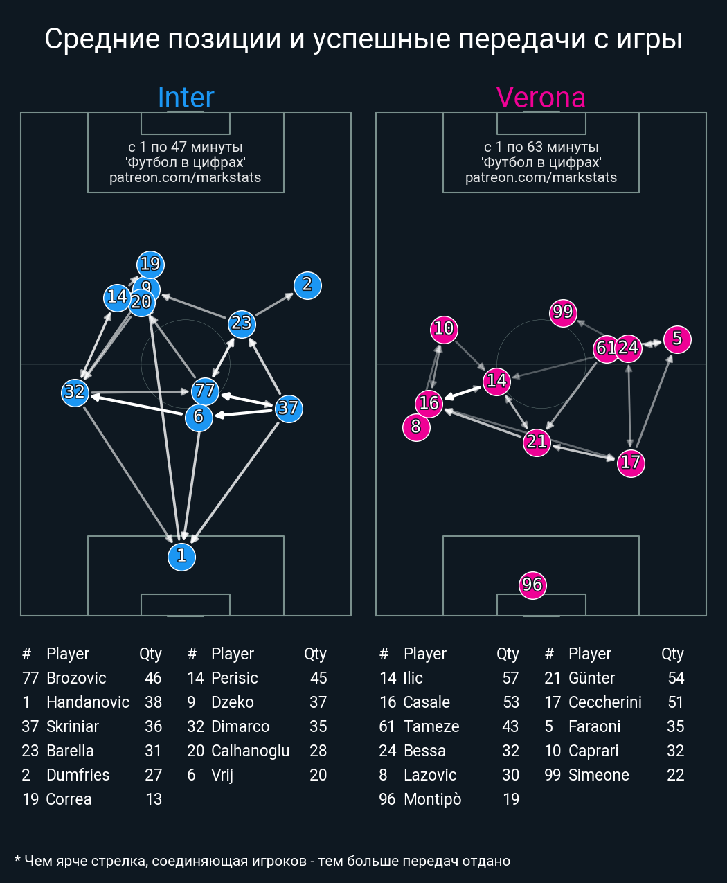 Футбол в цифрахСтатистика матча Inter vs Verona