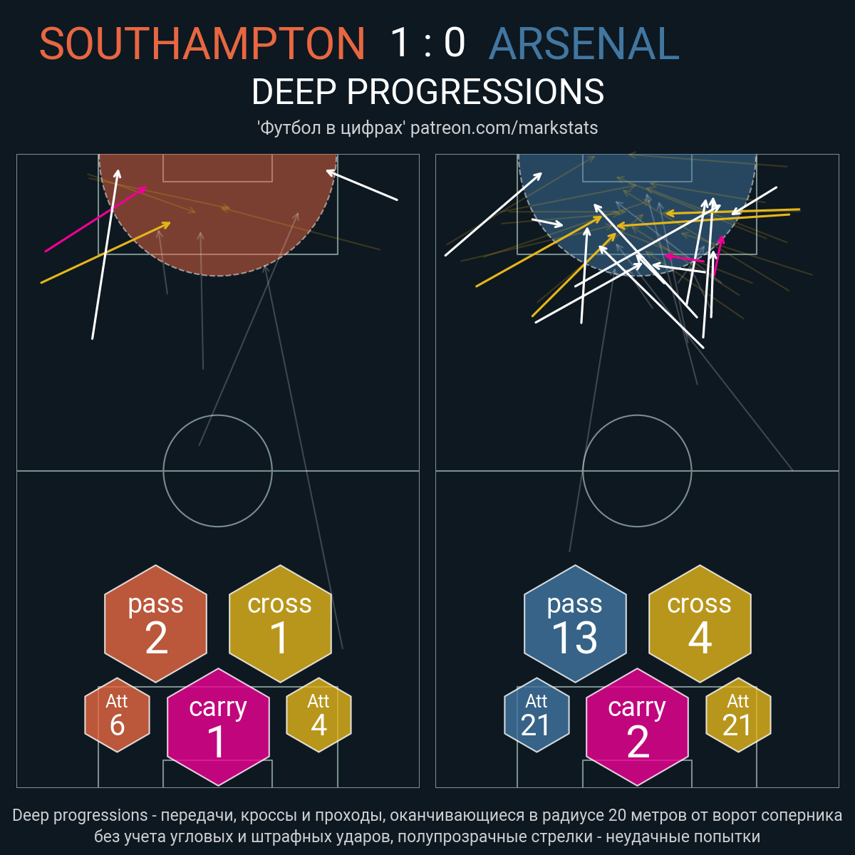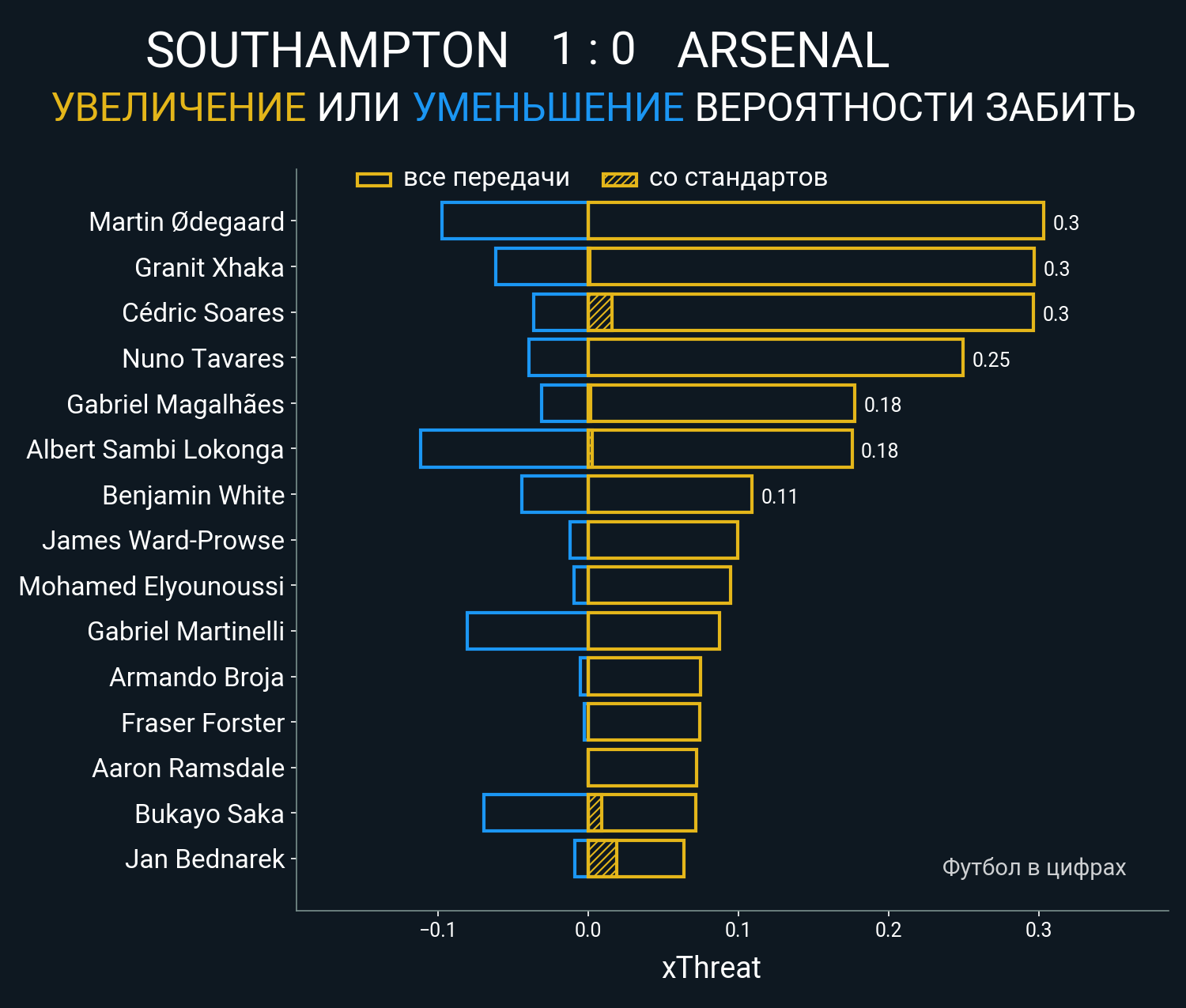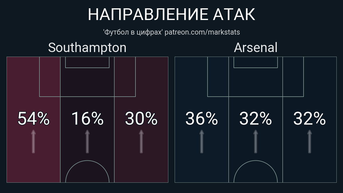 Футбол в цифрахСтатистика матча Southampton - Arsenal