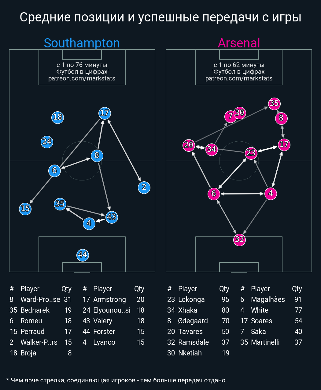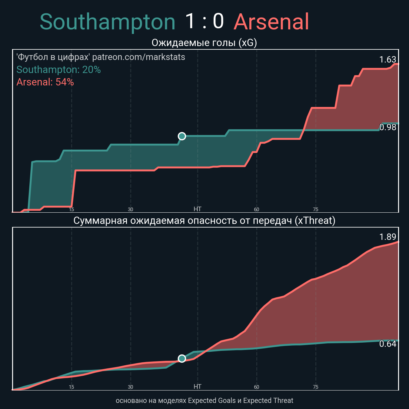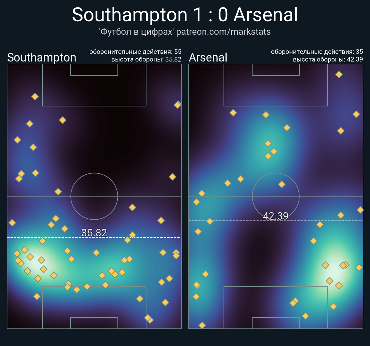 Футбол в цифрахСтатистика матча Southampton - Arsenal