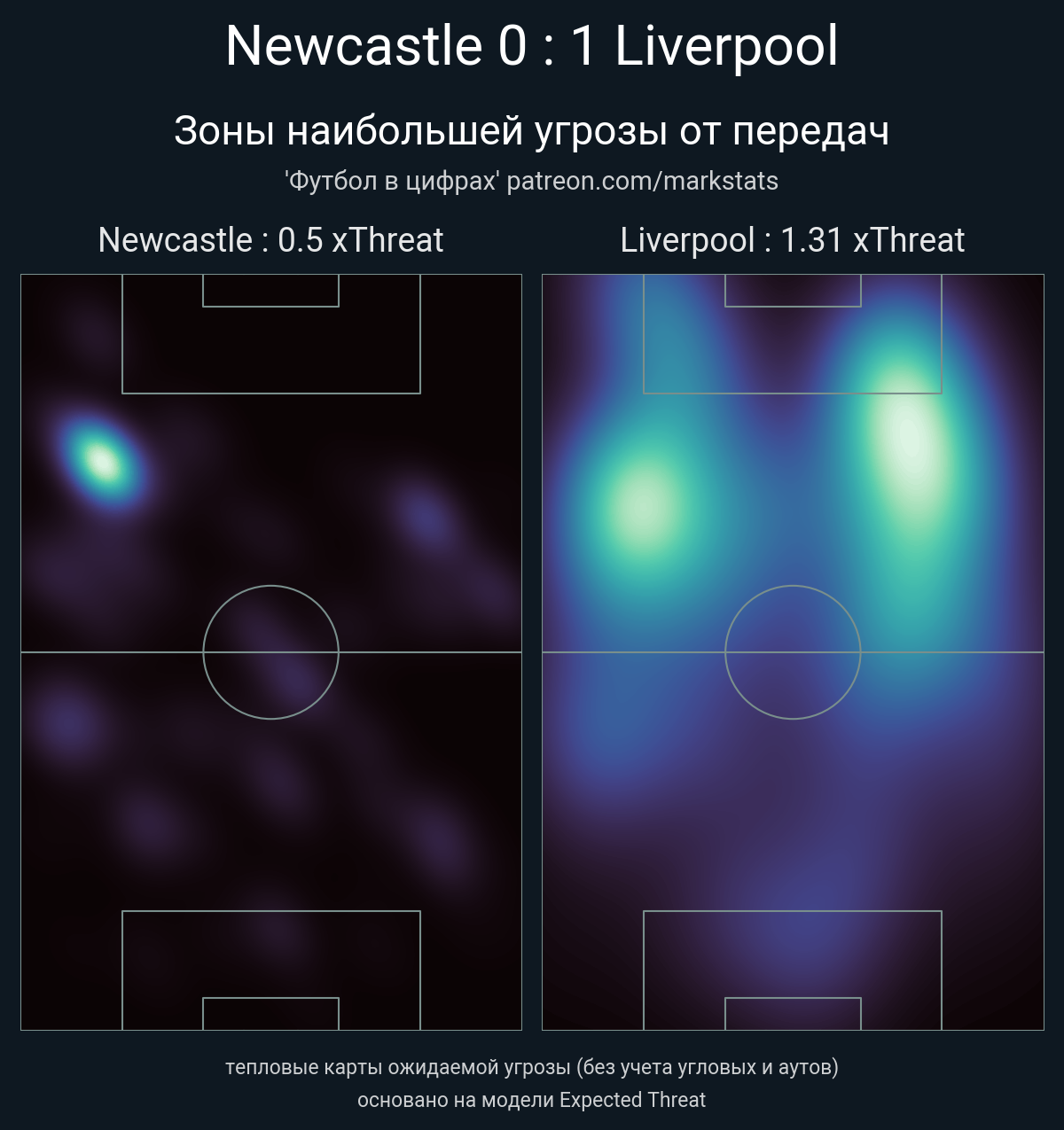▪ xThreat без учета угловых: 0.5 - 1.31