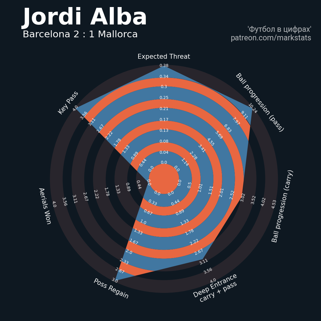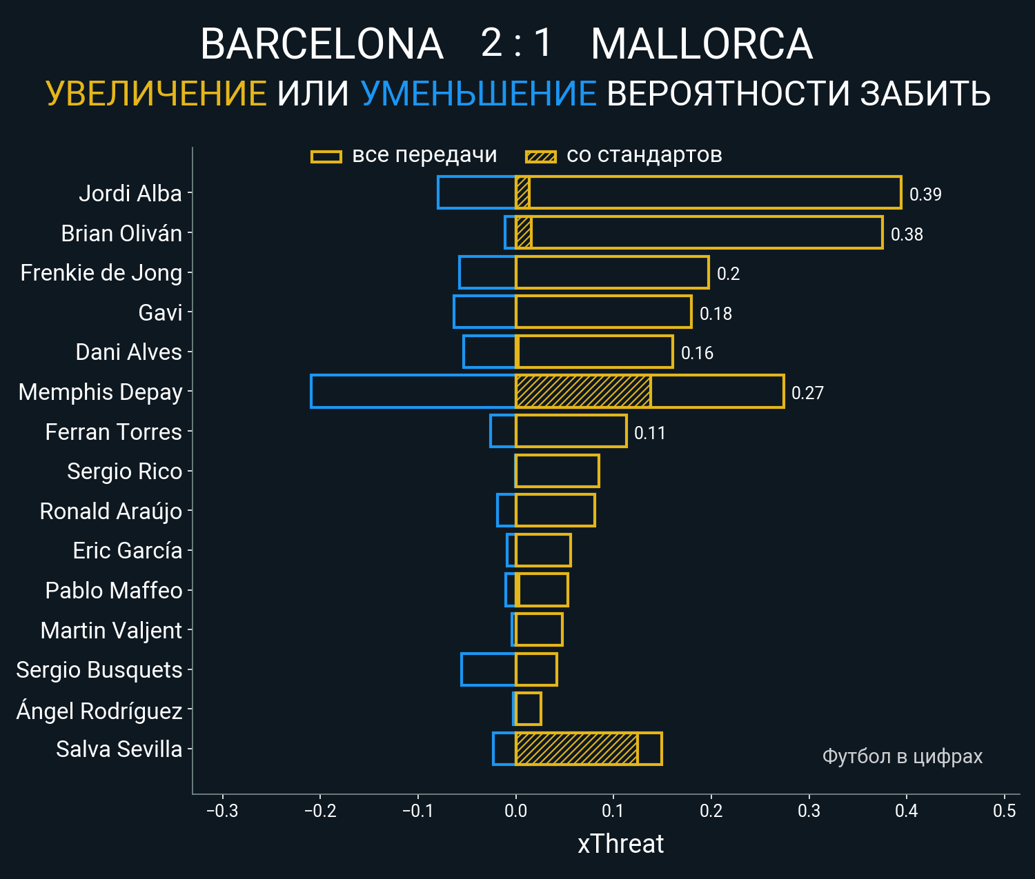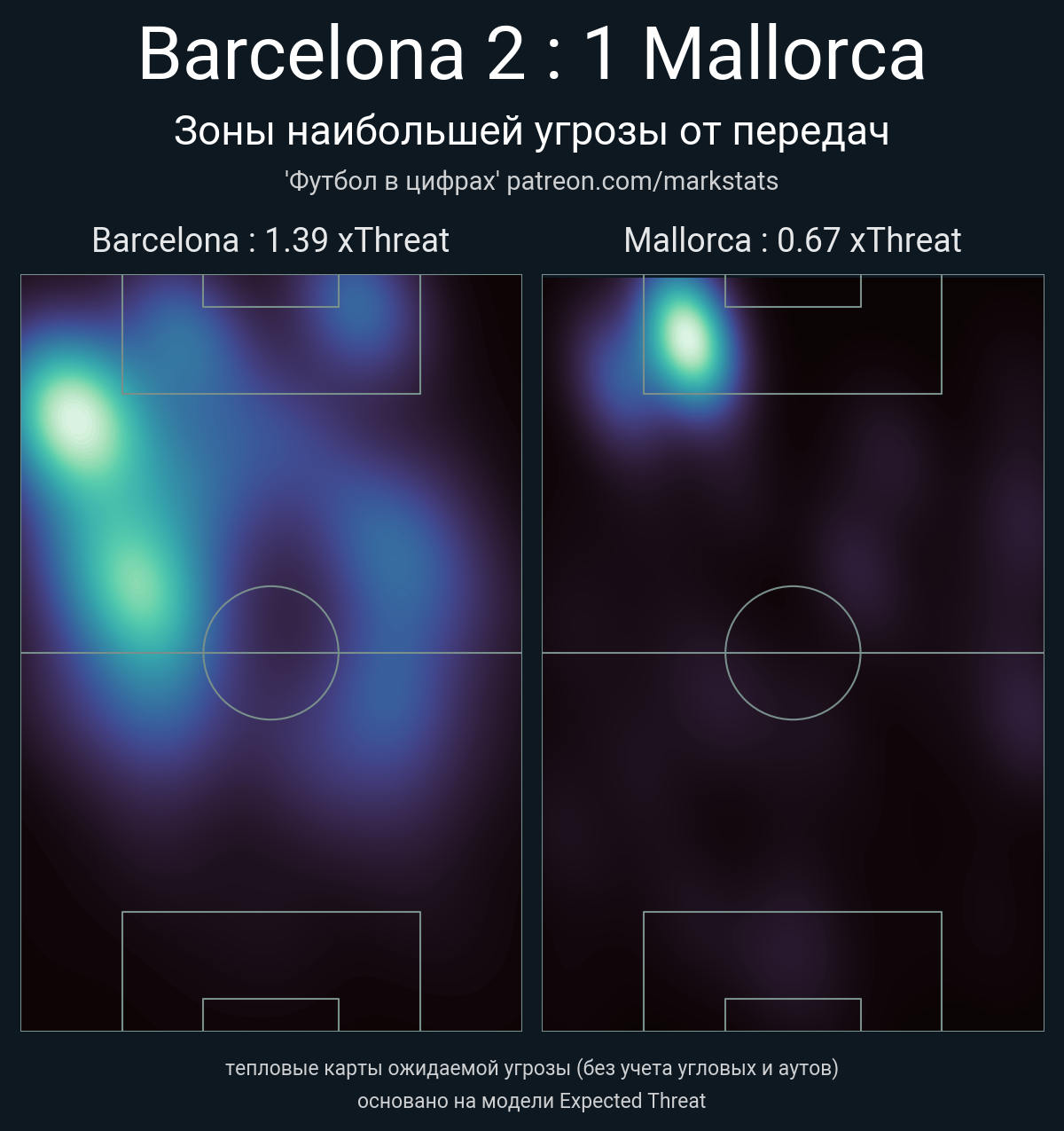 ▪ xThreat без учета угловых: 1.39 - 0.67