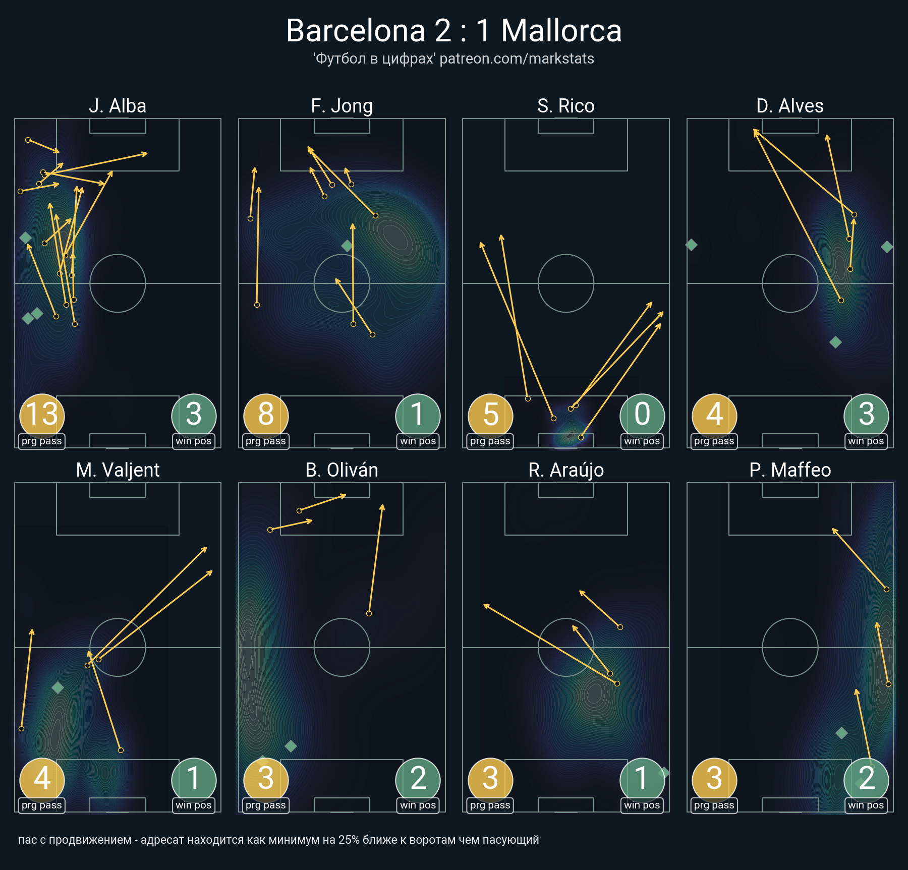 ▪ 30 успешных передач из 40 попыток (3 под удар, 3 с продвижением, 5 на трети соперника)