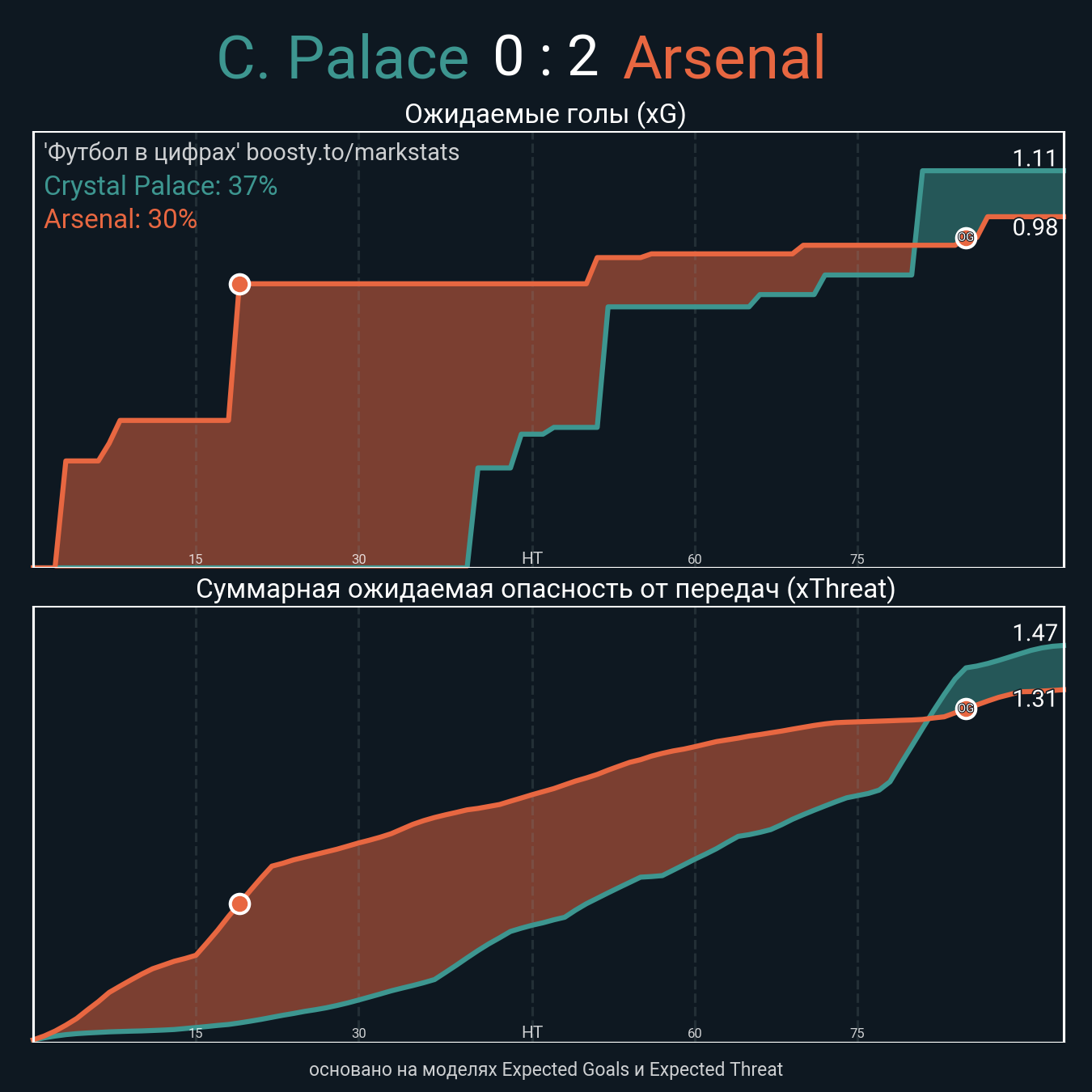 ▪ xThreat без учета угловых: 1.37 - 1.26