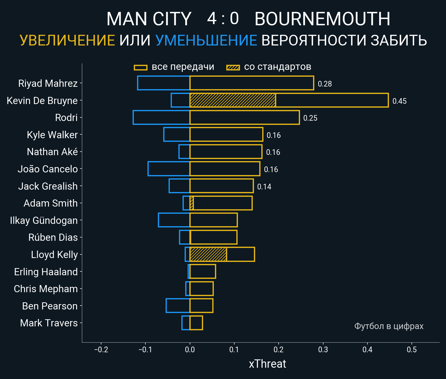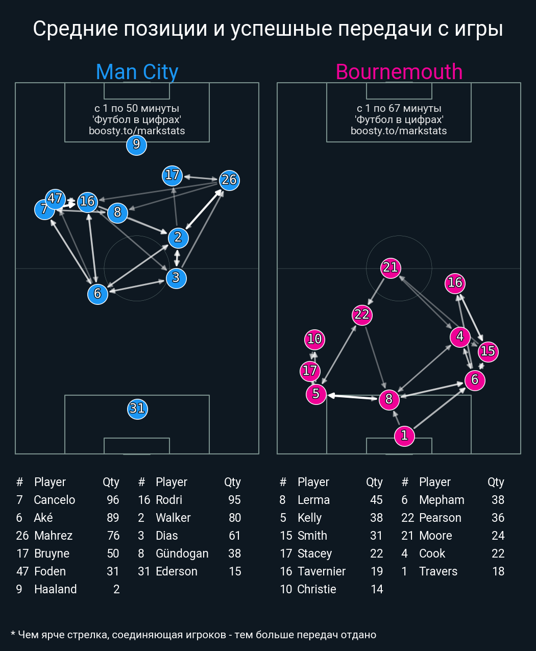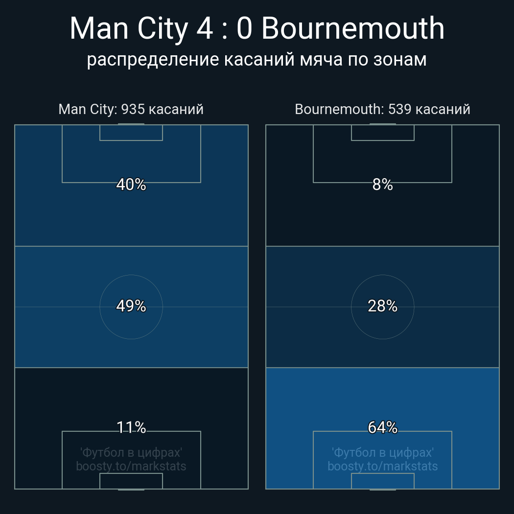 Футбол в цифрахСтатистика матча Man City - Bournemouth