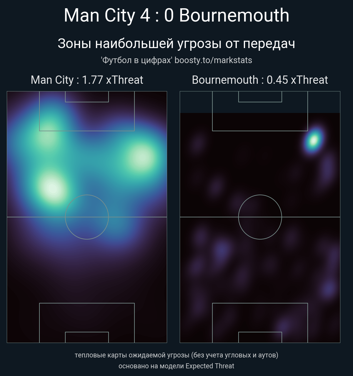 ▪ xThreat без учета угловых: 1.77 - 0.45