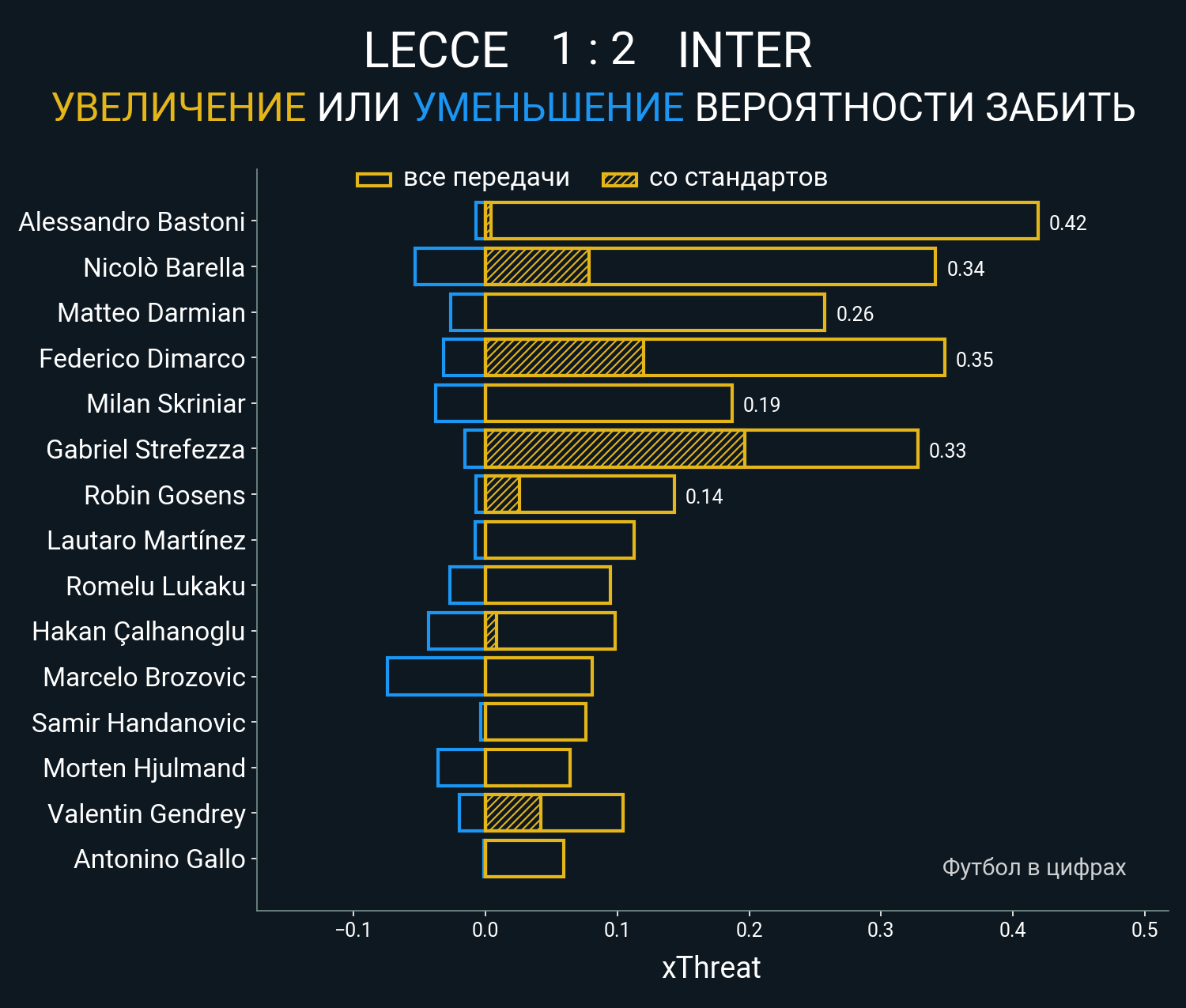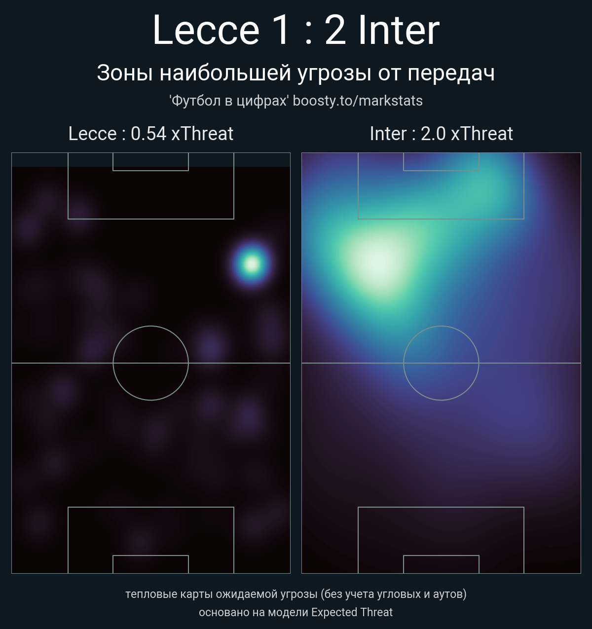 ▪ xThreat без учета угловых: 0.54 - 2.0