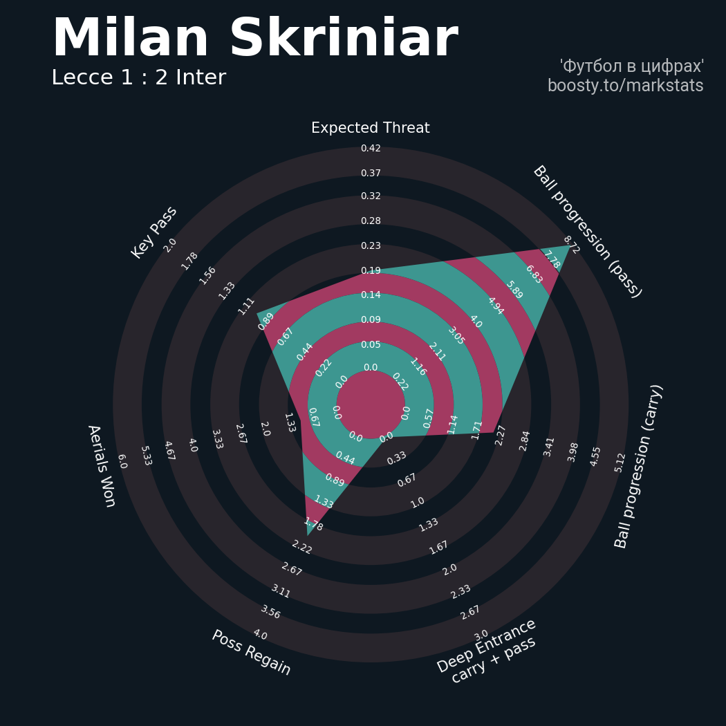 ▪ 0.23 очка xT (+0.12 со стандартов)