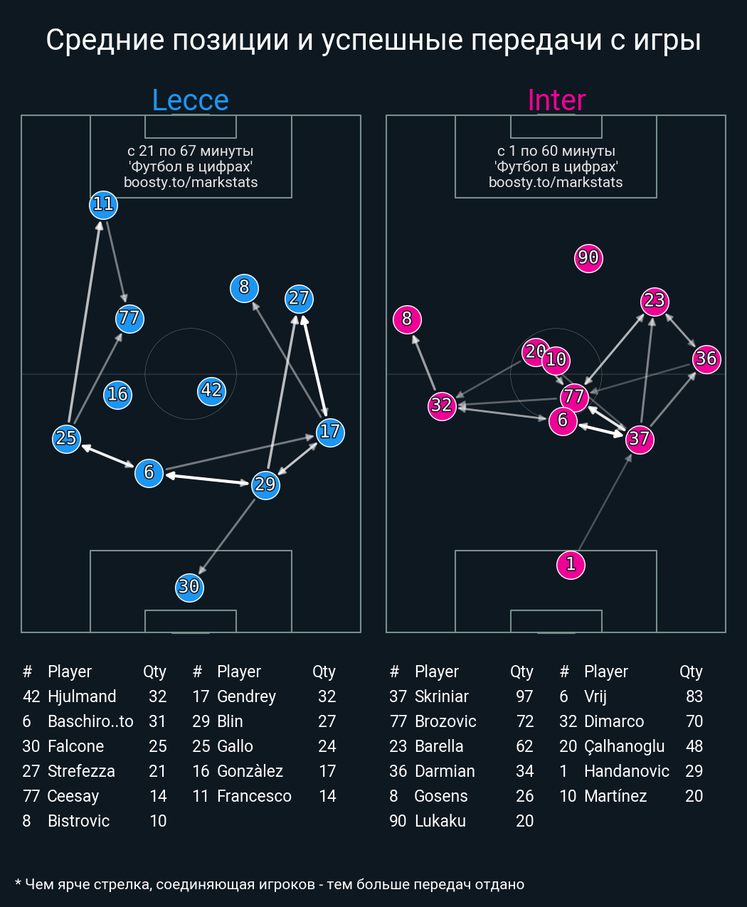 Футбол в цифрахСтатистика матча Lecce vs. Inter