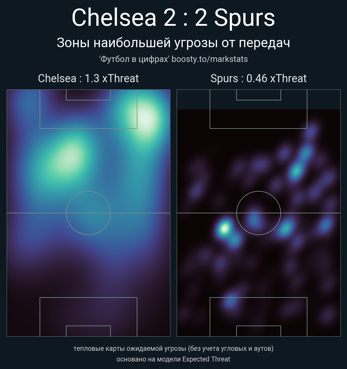 ▪ xThreat без учета угловых: 1.3 - 0.46