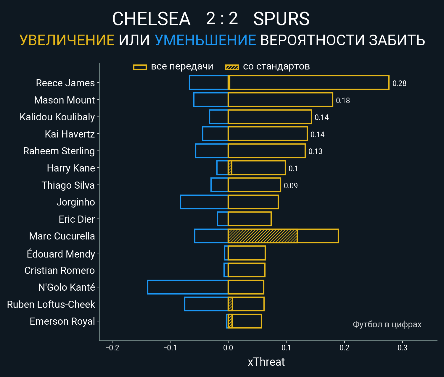Футбол в цифрахСтатистика матча Chelsea vs Tottenham