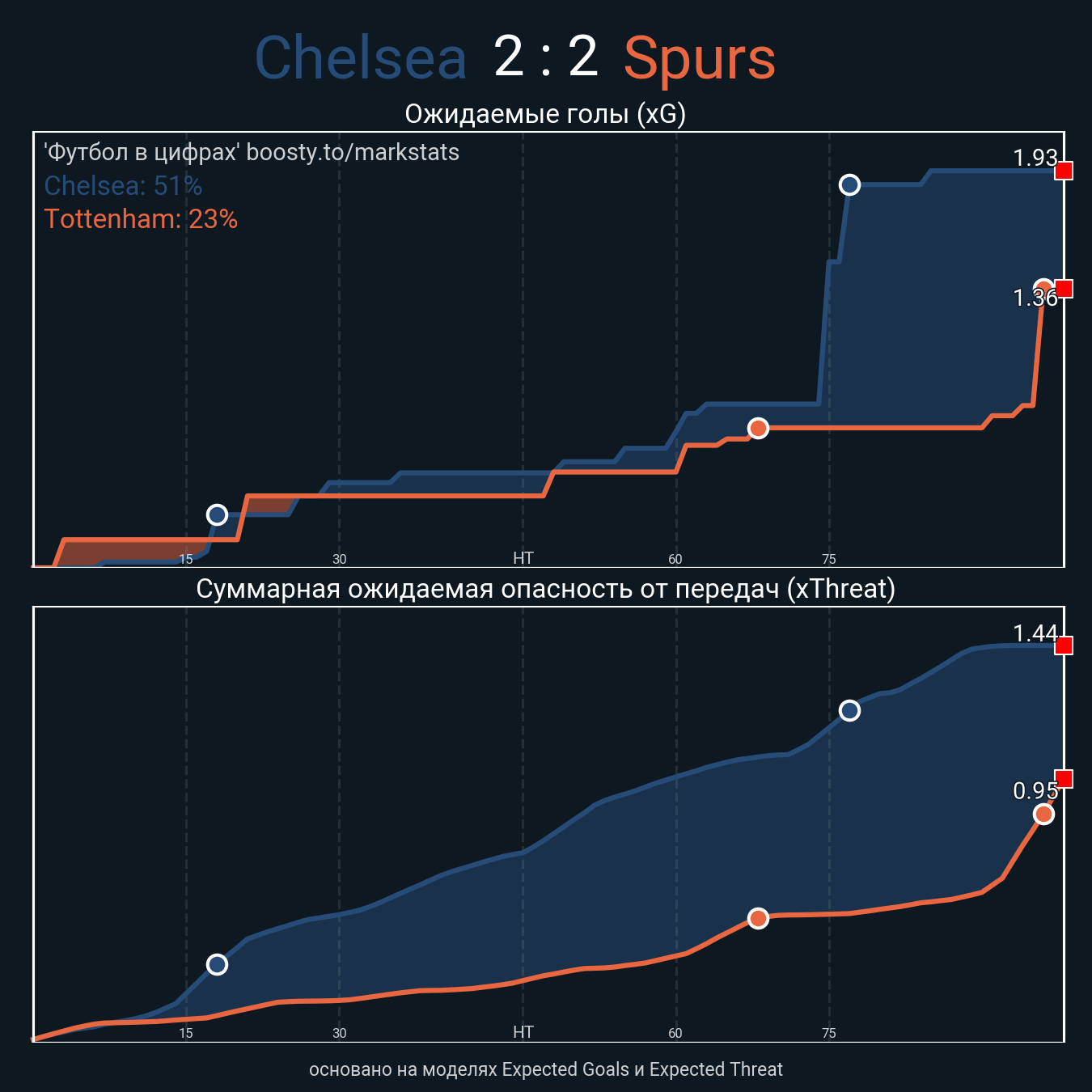 ▪ Ожидаемые голы (NPxG): 1.93 - 1.36