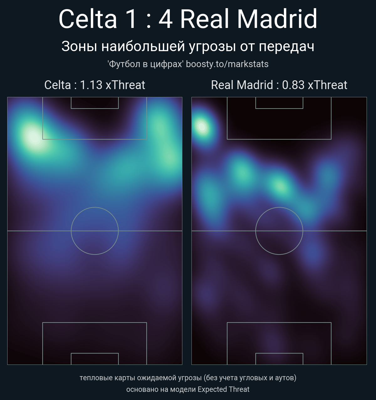 ▪ xThreat без учета угловых: 1.13 - 0.83