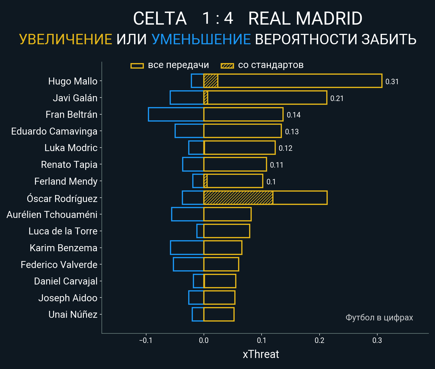 ▪ 0.14 очка xT (+0.0 со стандартов)