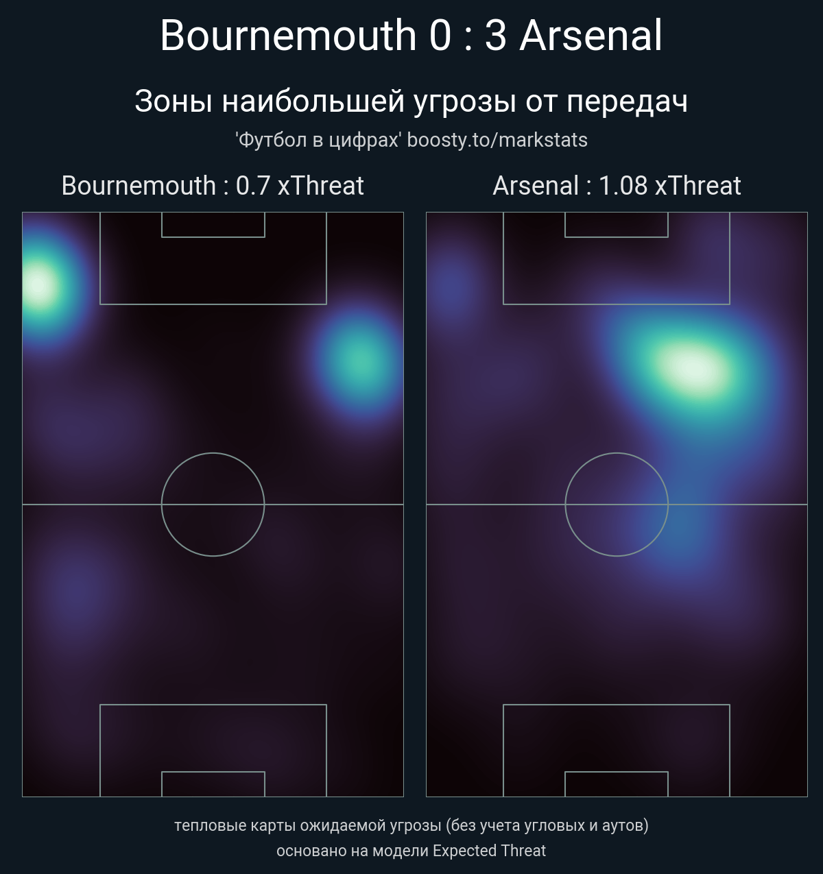 ▪ xThreat без учета угловых: 0.7 - 1.08