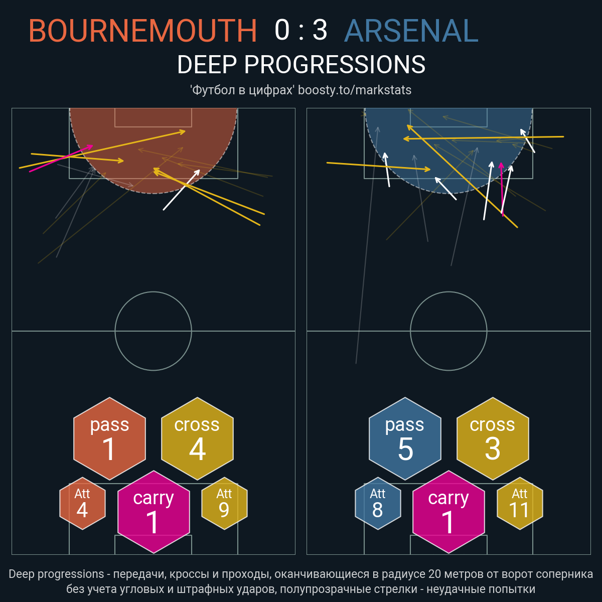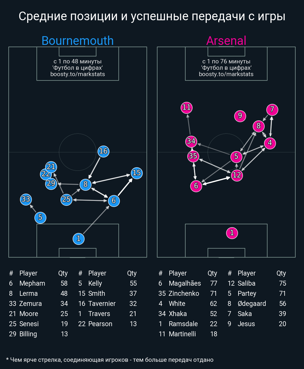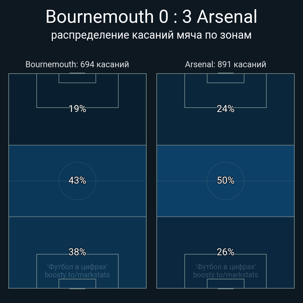 Футбол в цифрахСтатистика матча Bournemouth - Arsenal