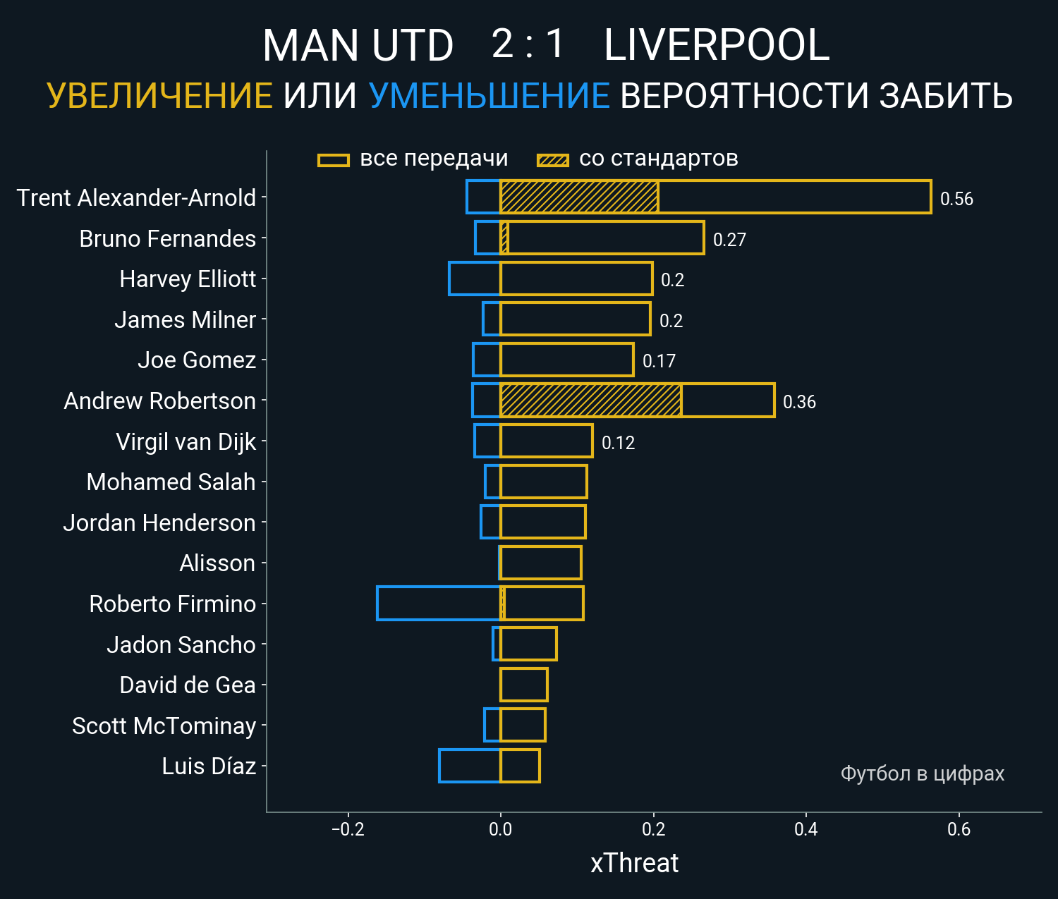 Футбол в цифрахСтатистика матча Man Utd vs Liverpool