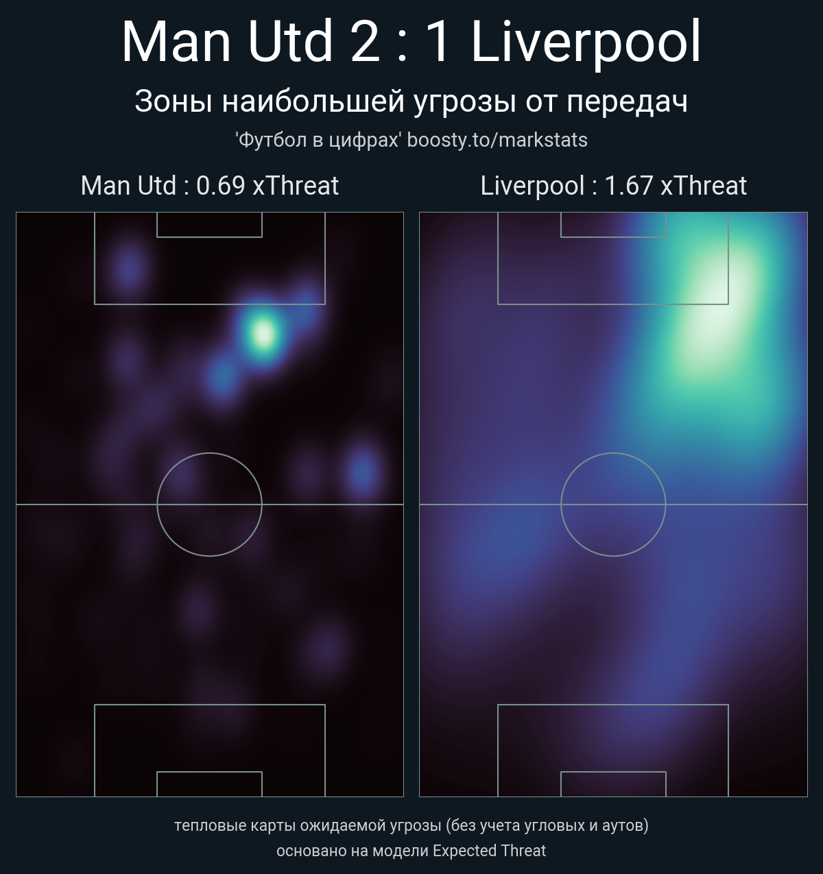 ▪ xThreat без учета угловых: 0.69 - 1.67