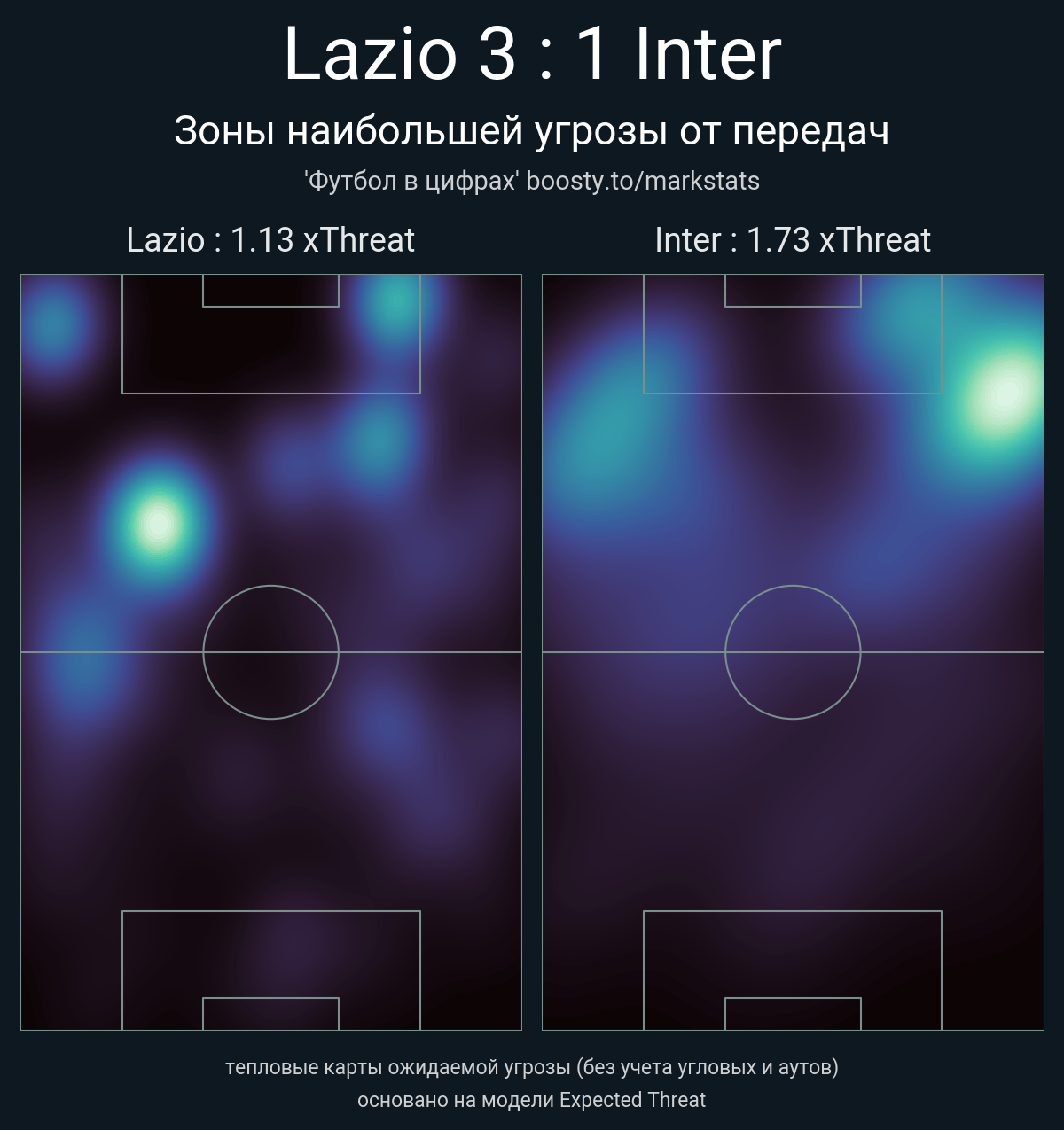 ▪ xThreat без учета угловых: 1.13 - 1.73