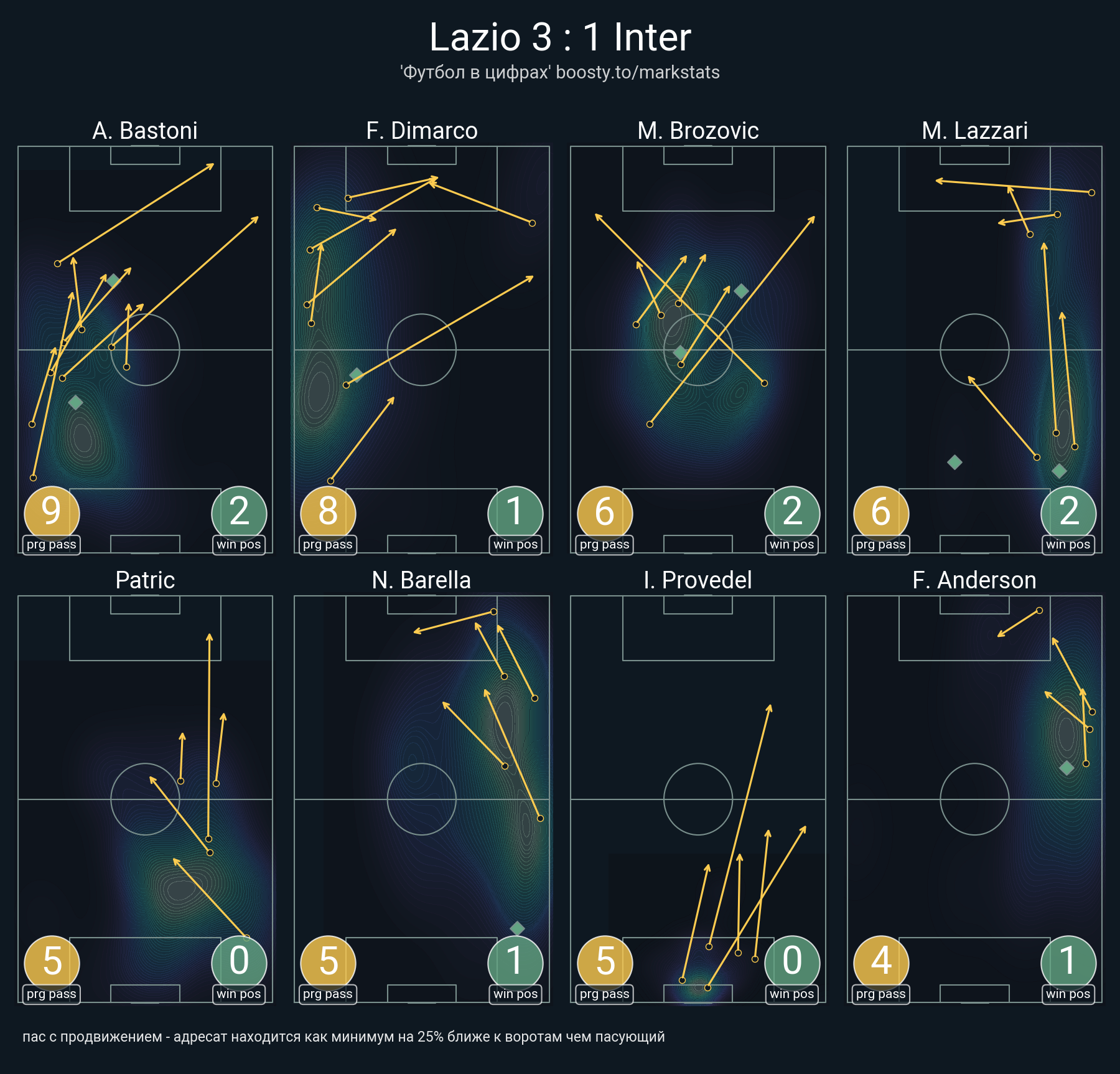 ▪ 25 успешных передач из 32 попыток (1 ассист, 3 под удар, 4 с продвижением, 10 на трети соперника)
