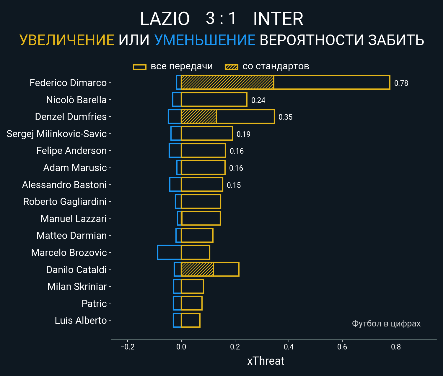 ▪ 0.15 очка xT (+0.0 со стандартов)