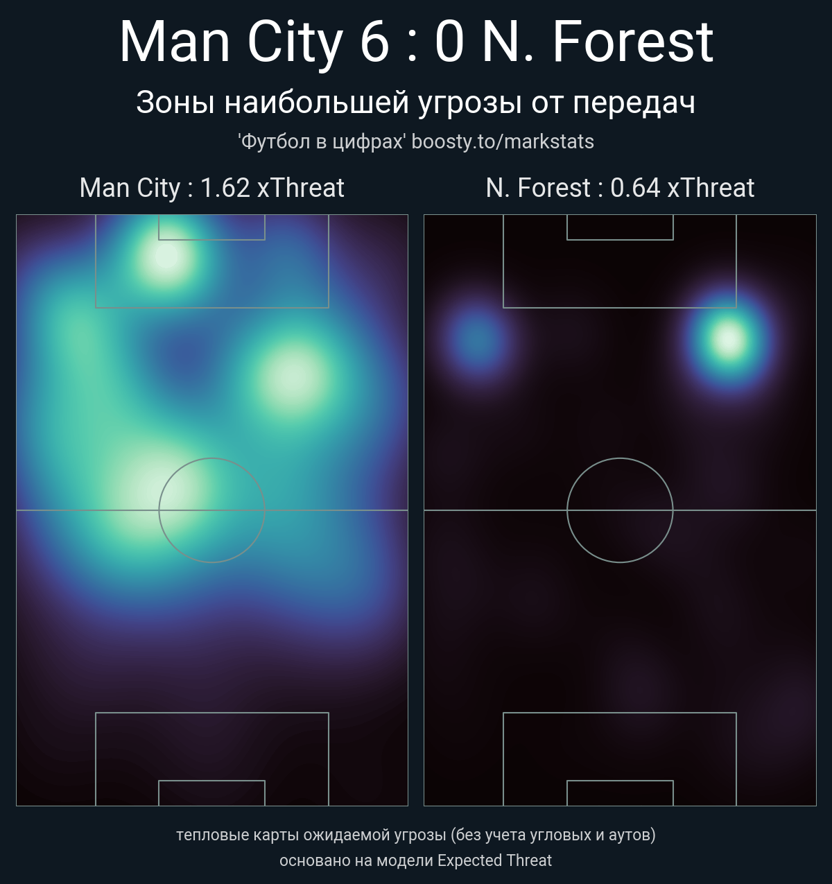 ▪ xThreat без учета угловых: 1.62 - 0.64