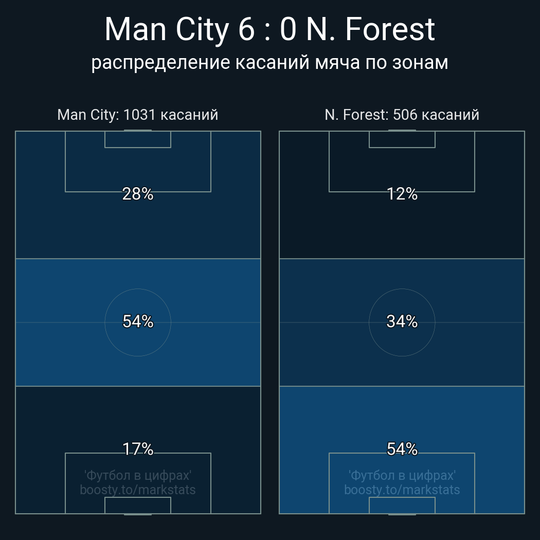 Футбол в цифрахСтатистика матча Man City vs. Nottingham Forest