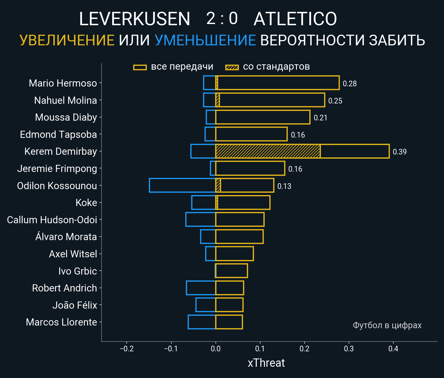 Футбол в цифрахСтатистика матча Leverkusen vs. Atletico