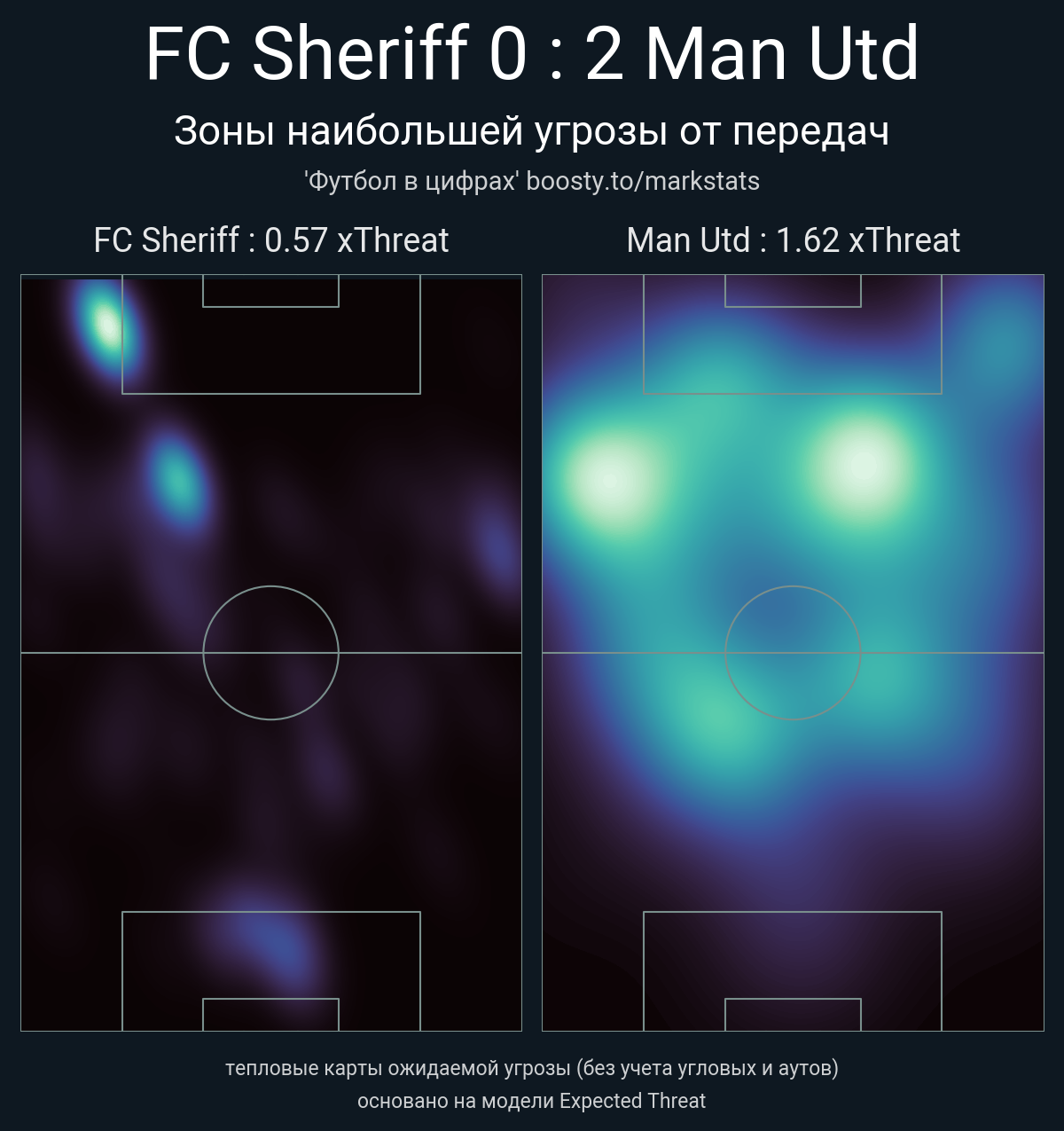 ▪ xThreat без учета угловых: 0.57 - 1.62