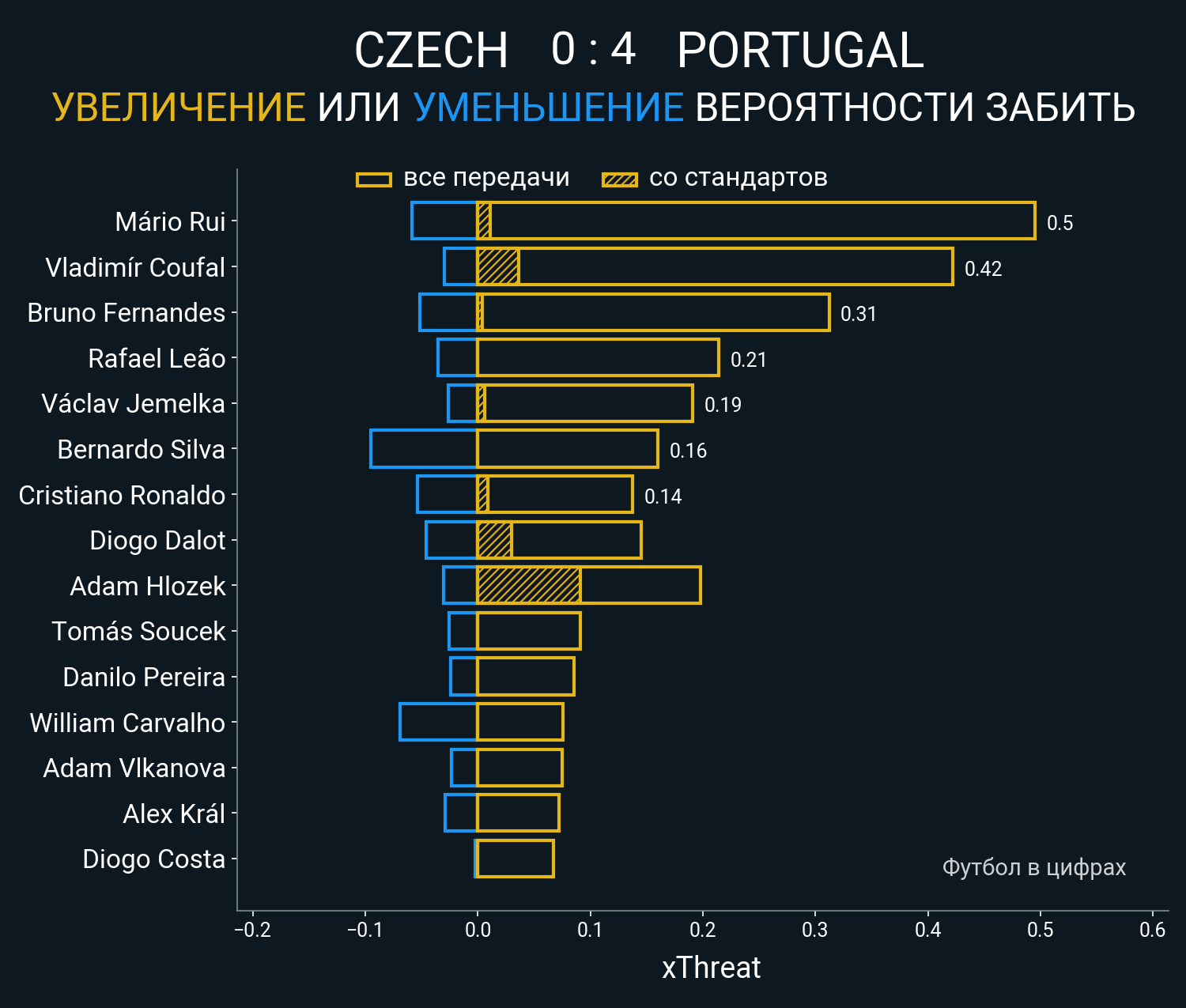 Футбол в цифрахСтатистика матча Czech Republic - Portugal