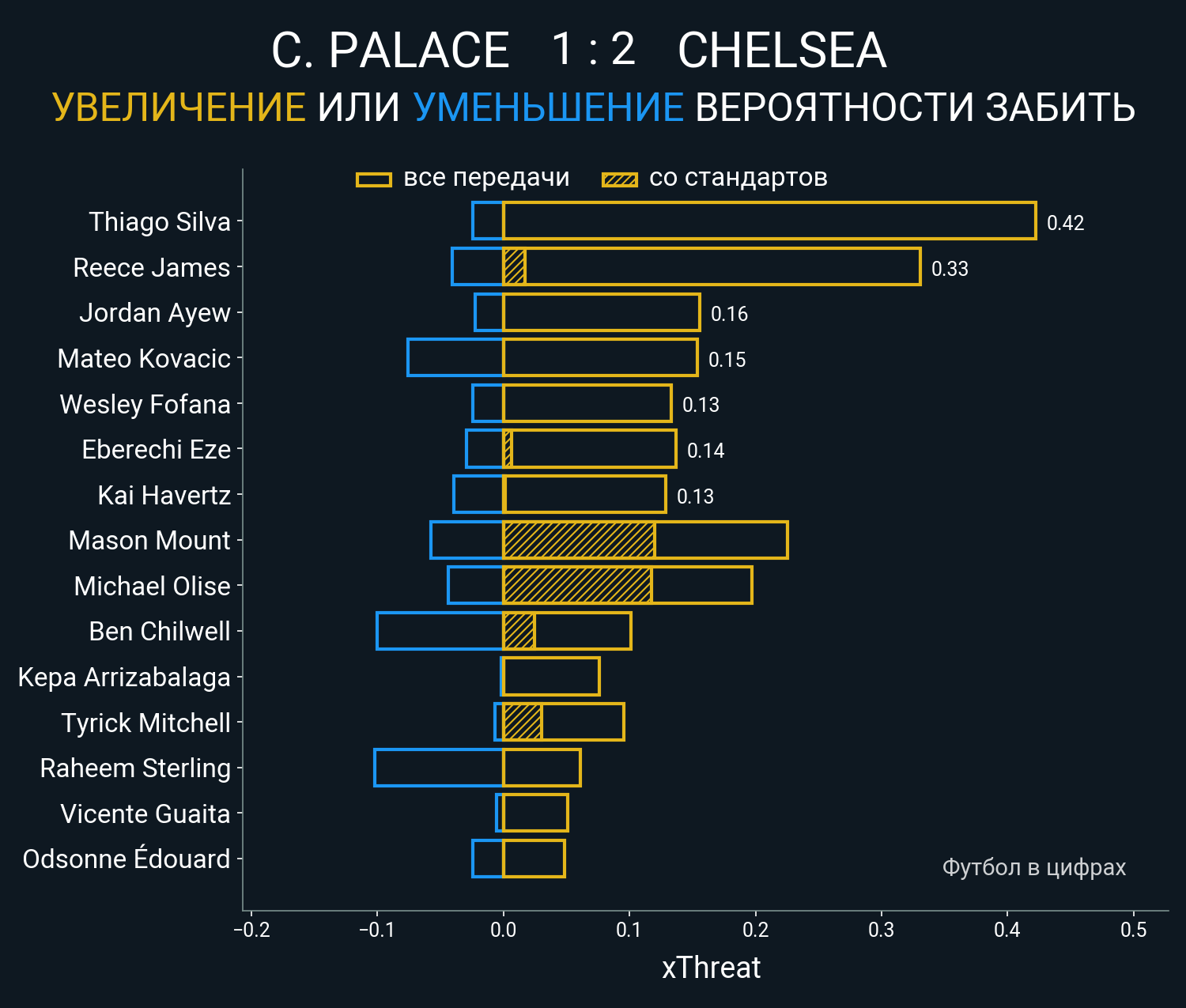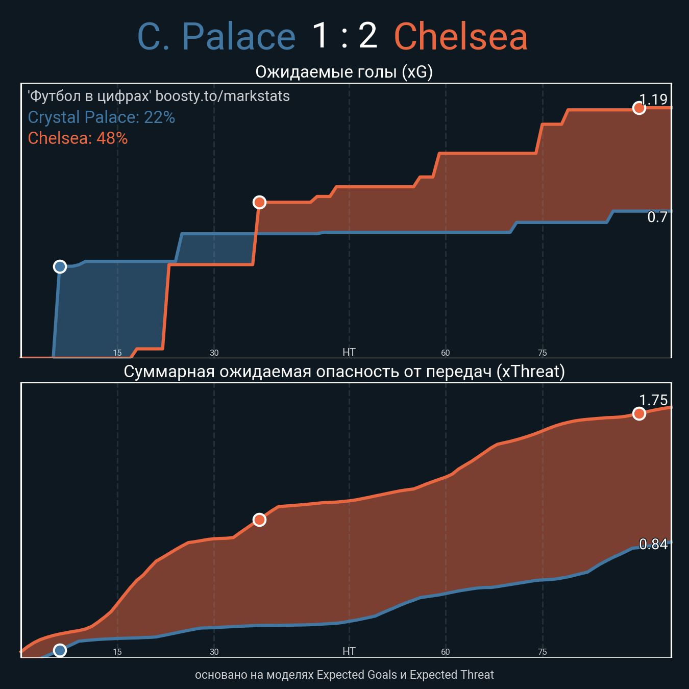 Футбол в цифрахСтатистика матча Crystal Palace vs Chelsea