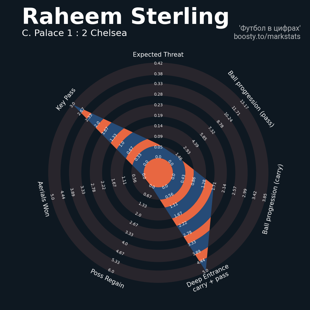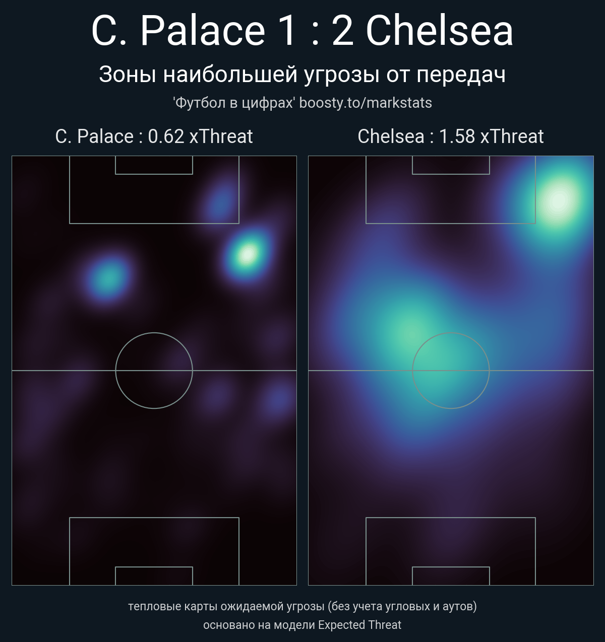 ▪ xThreat без учета угловых: 0.62 - 1.58