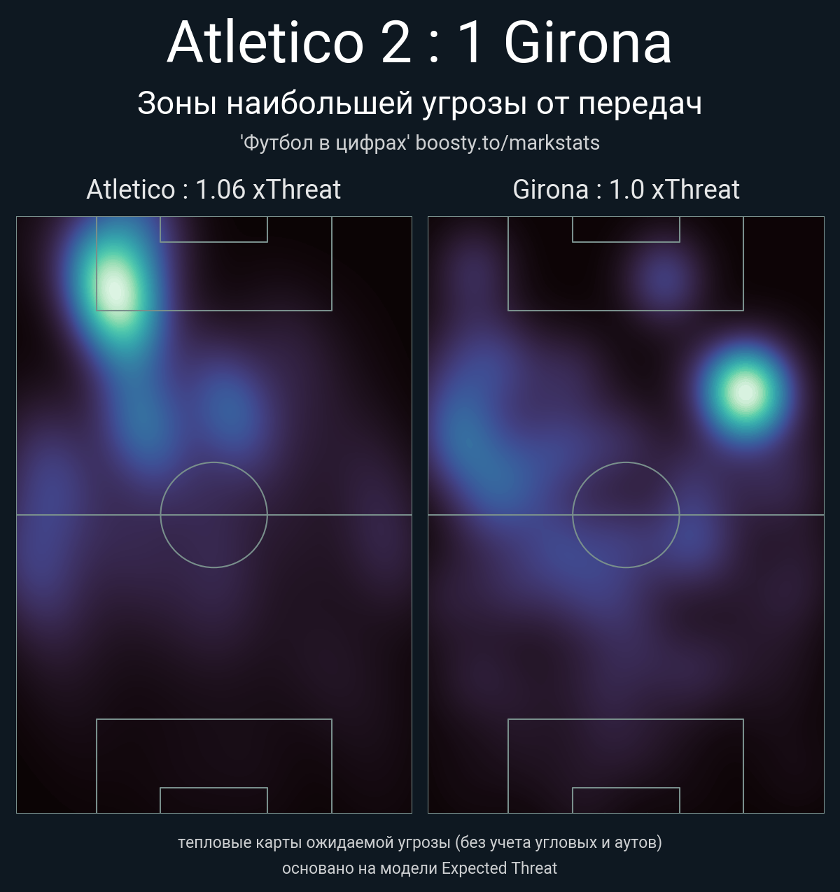 ▪ xThreat без учета угловых: 1.06 - 1.0