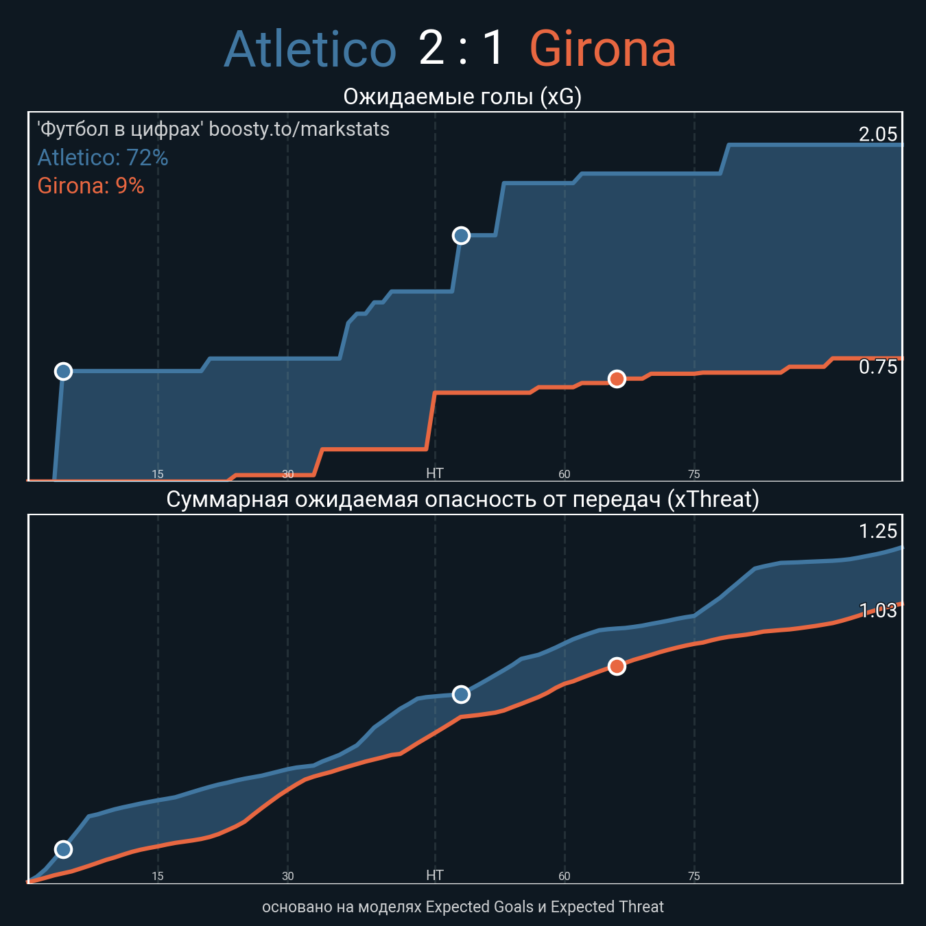 Футбол в цифрахСтатистика матча Atletico vs. Girona