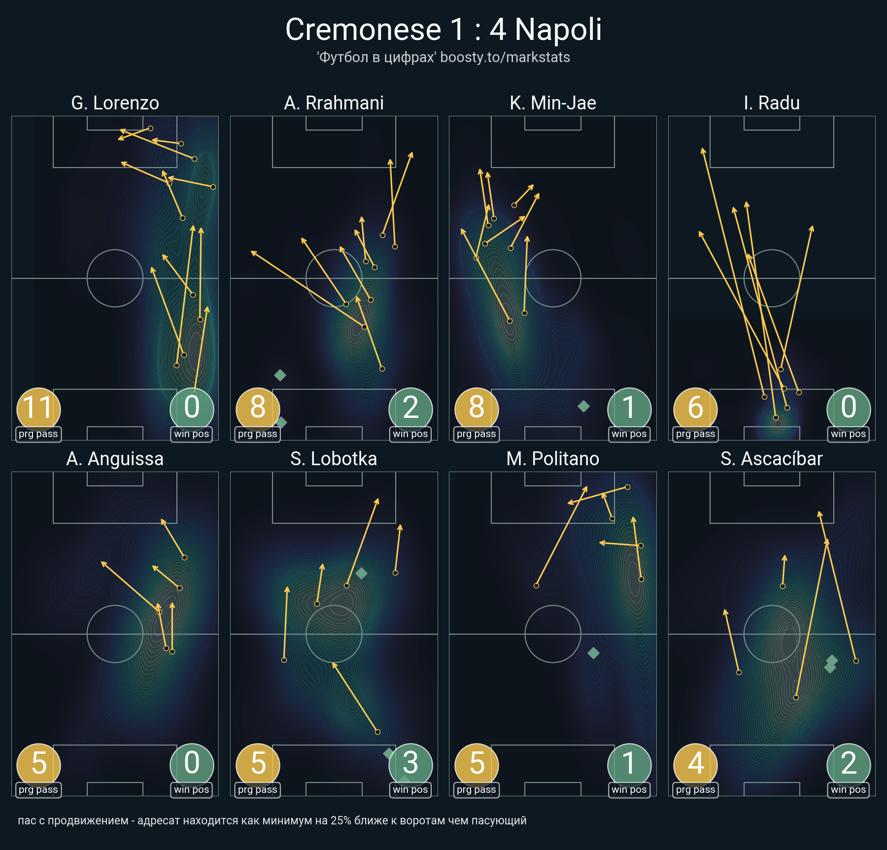 ▪ 80 успешных передач из 87 попыток (8 с продвижением, 3 на трети соперника)