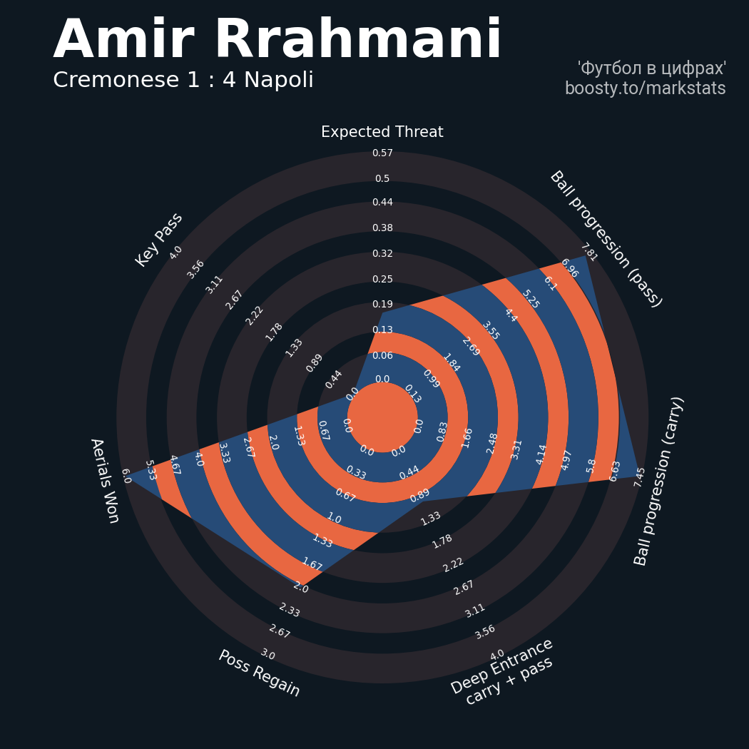 ▪ xThreat без учета угловых: 0.71 - 1.92