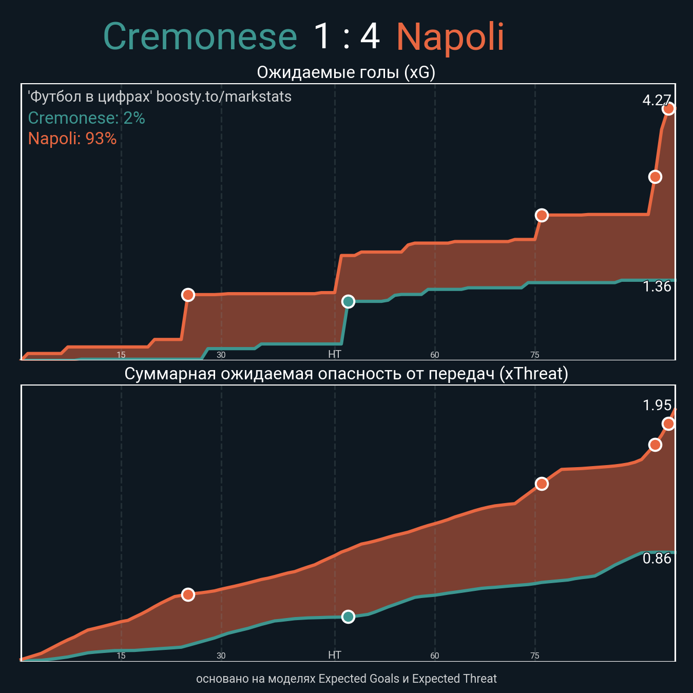 Футбол в цифрахСтатистика матча Cremonese vs Napoli