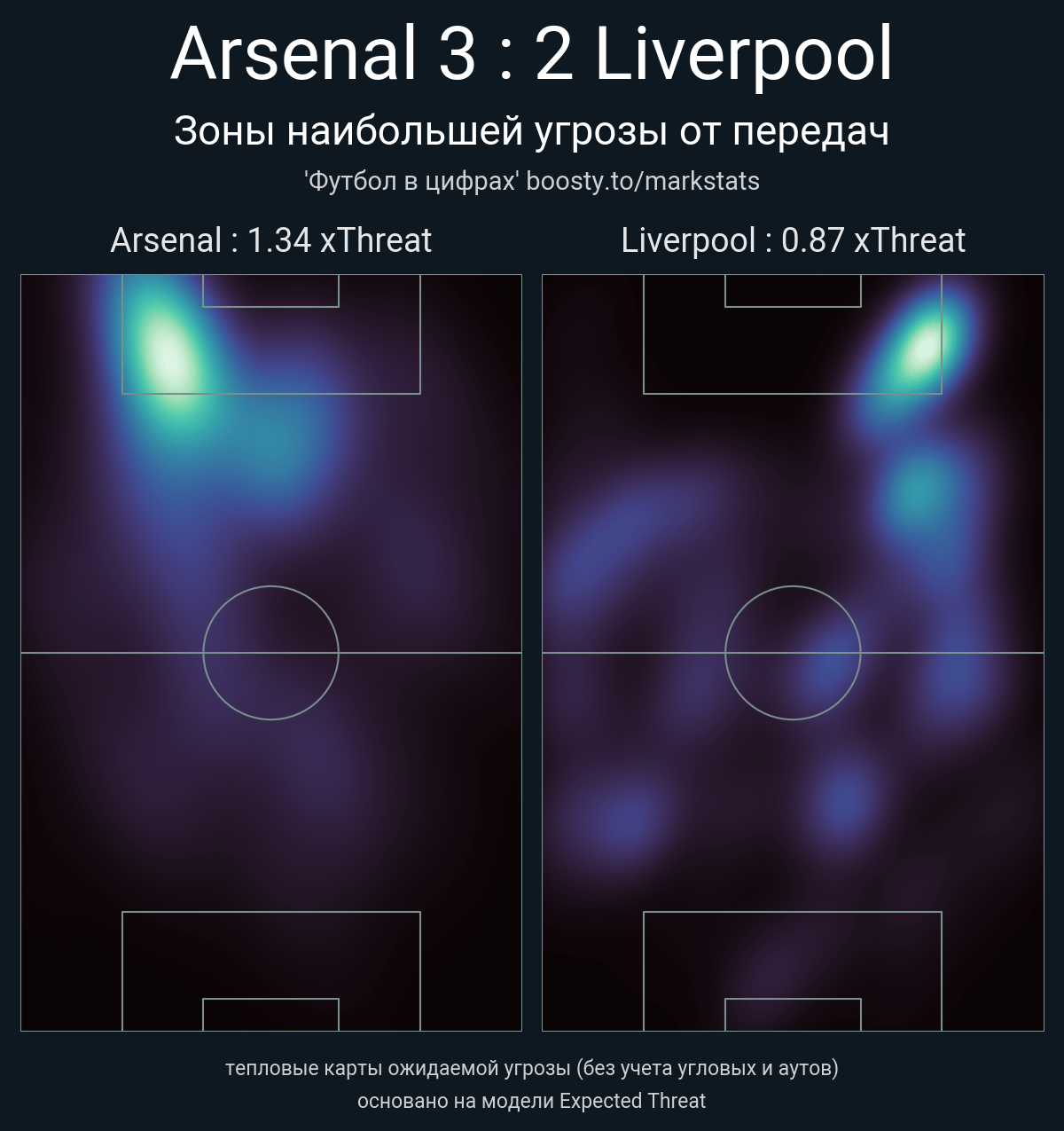 ▪ xThreat без учета угловых: 1.34 - 0.87