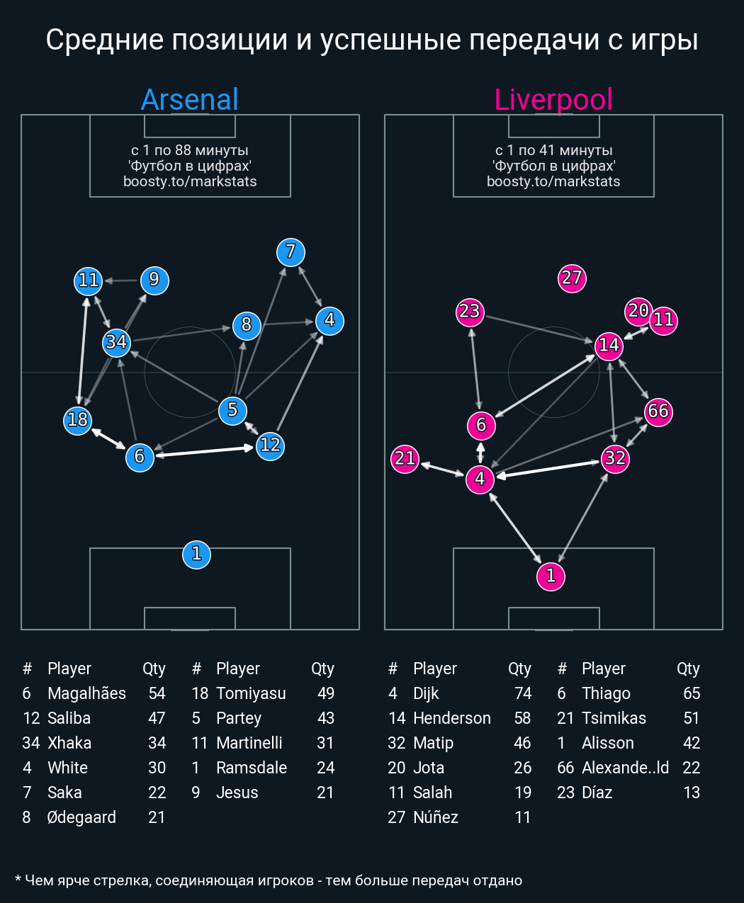 Футбол в цифрахСтатистика матча Arsenal vs. Liverpool