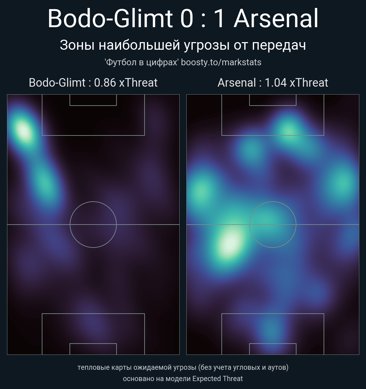▪ xThreat без учета угловых: 0.86 - 1.04