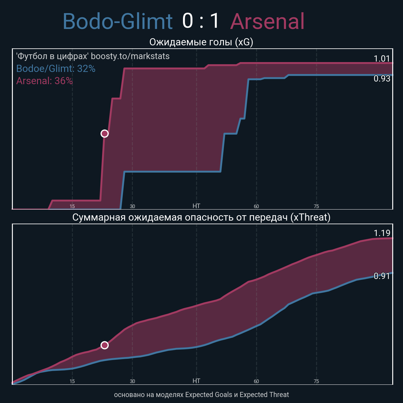 ▪ Ожидаемые голы (NPxG): 0.93 - 1.01