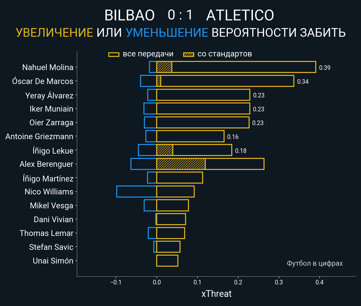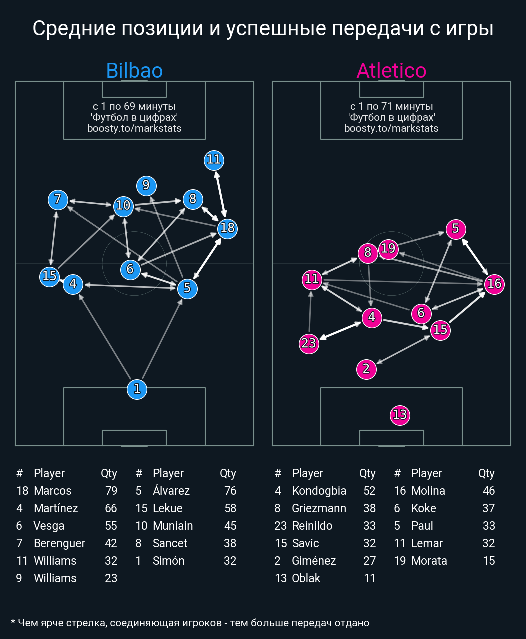 Футбол в цифрахСтатистика матча Athletic Bilbao vs Atletico