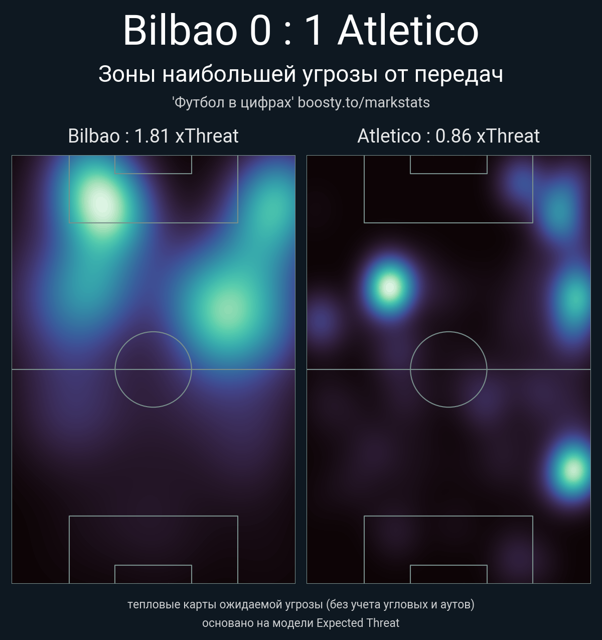 ▪ xThreat без учета угловых: 1.81 - 0.86