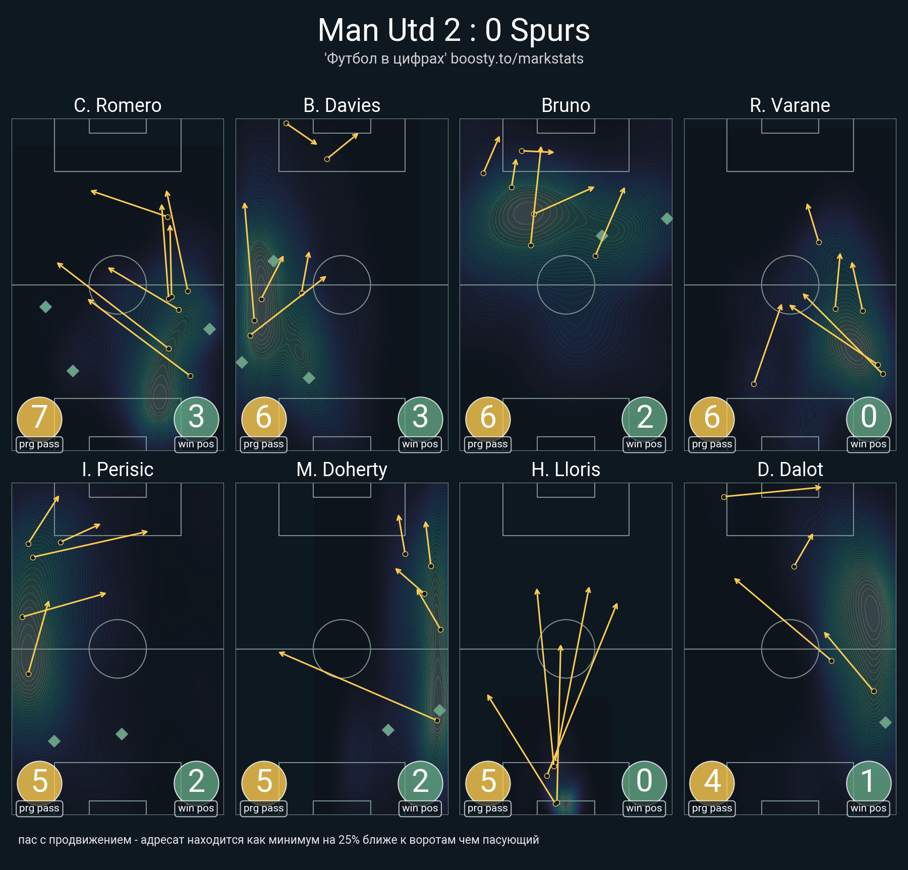 ▪ 33 успешных передач из 47 попыток (5 с продвижением, 7 на трети соперника)