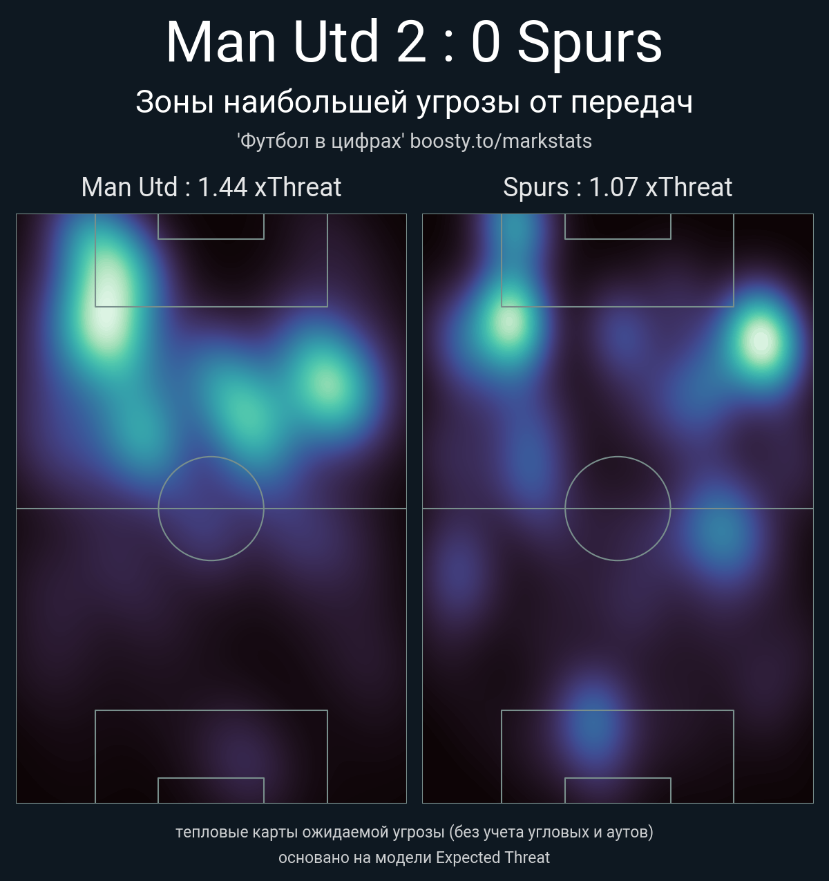 ▪ xThreat без учета угловых: 1.44 - 1.07