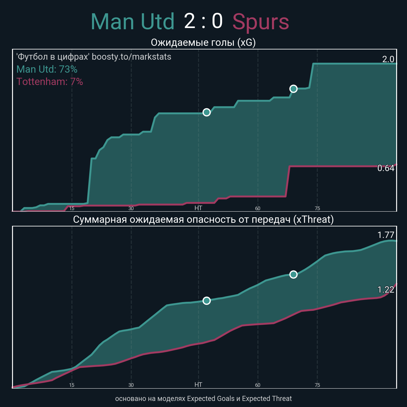 ▪ Ожидаемые голы (NPxG): 2.0 - 0.64