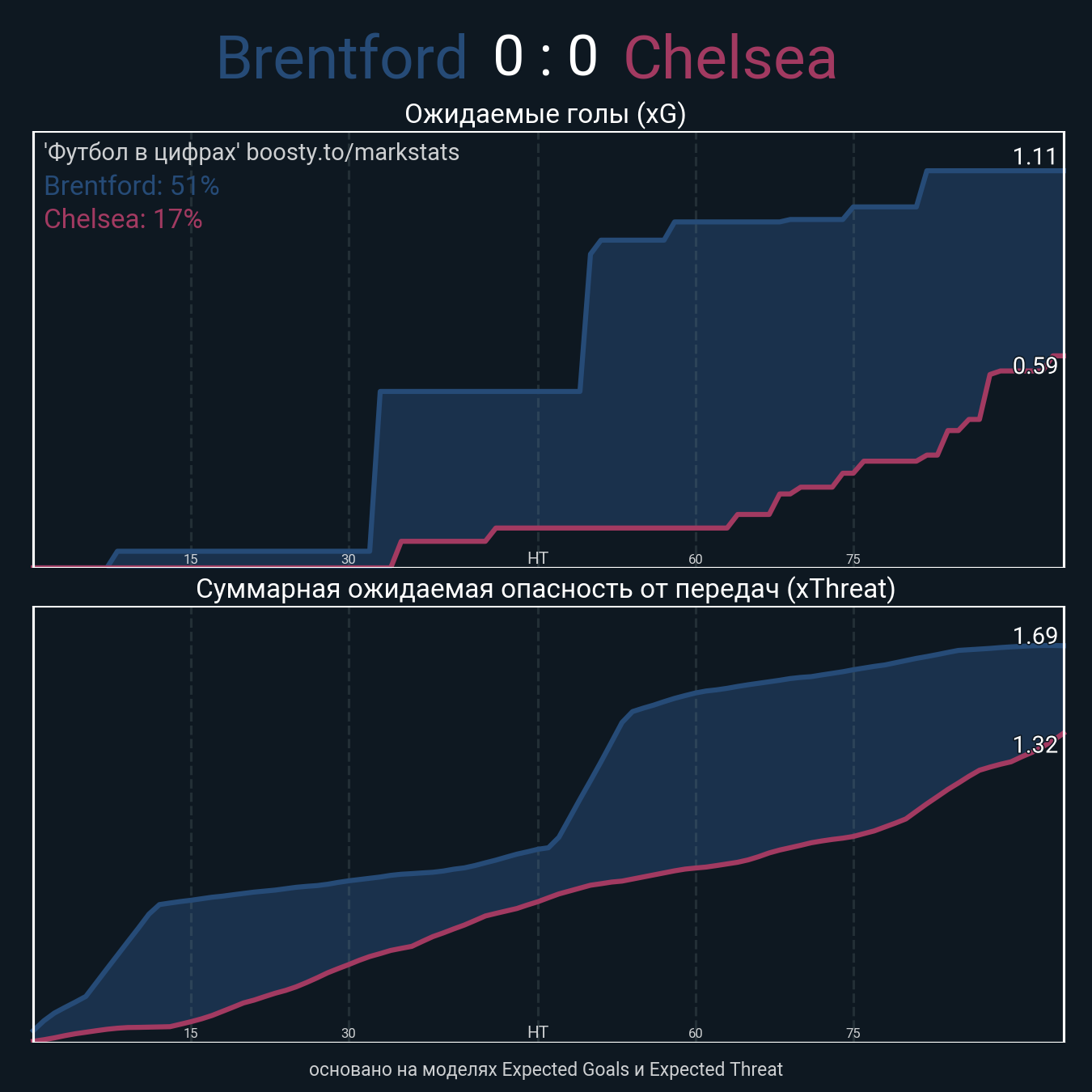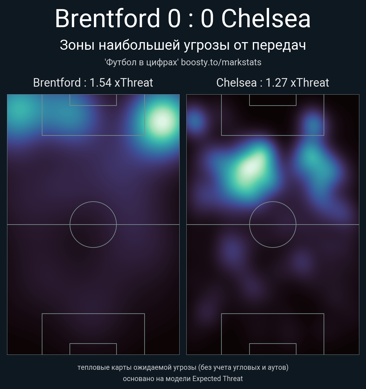 ▪ xThreat без учета угловых: 1.54 - 1.27