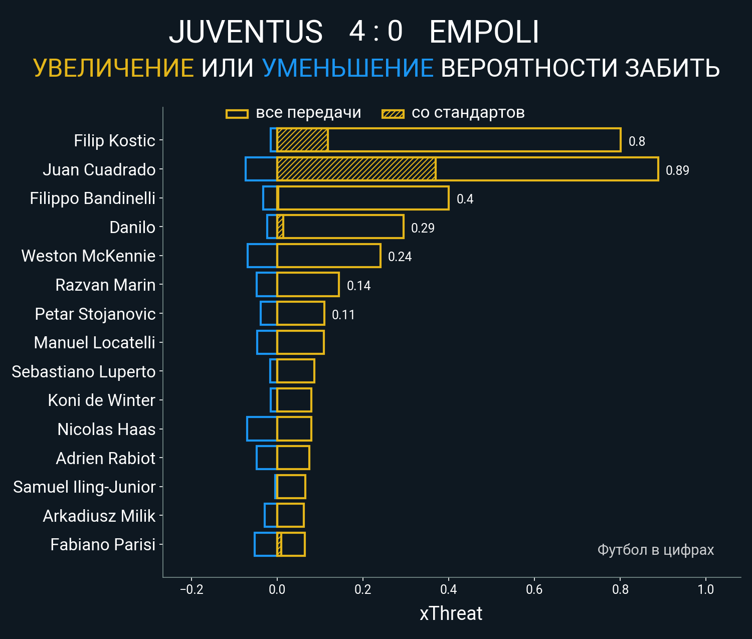 ▪ 0.4 очка xT (+0.0 со стандартов)